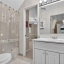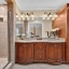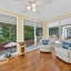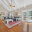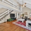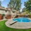 A generous laundry room, easily doubling as a mudroom, connects the kitchen to the side-facing two-car garage. At the end of the laundry room, a large “Costco” pantry makes grocery storage simple. Back through the kitchen and past the charming brick accent wall, you’ll enter a breathtaking two-story family room with a gas-log fireplace. Sunlight pours in from the attached four-season sunroom, which offers views of the sparkling pool and lush backyard.