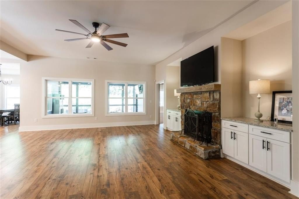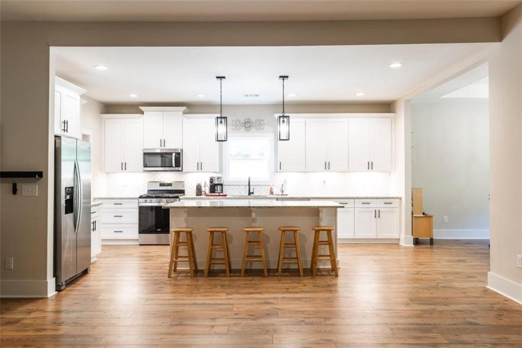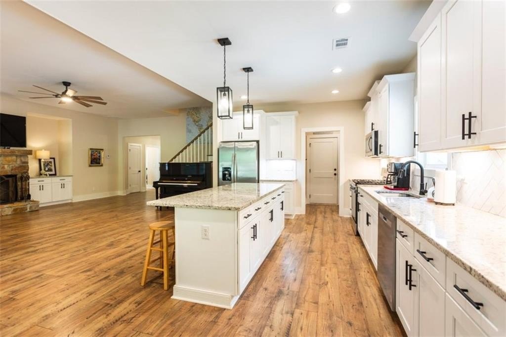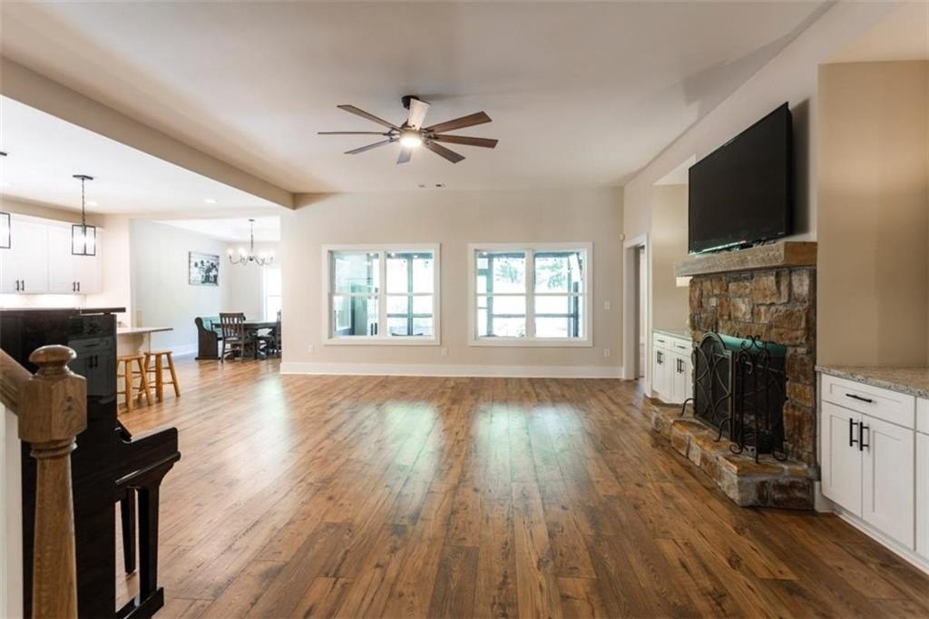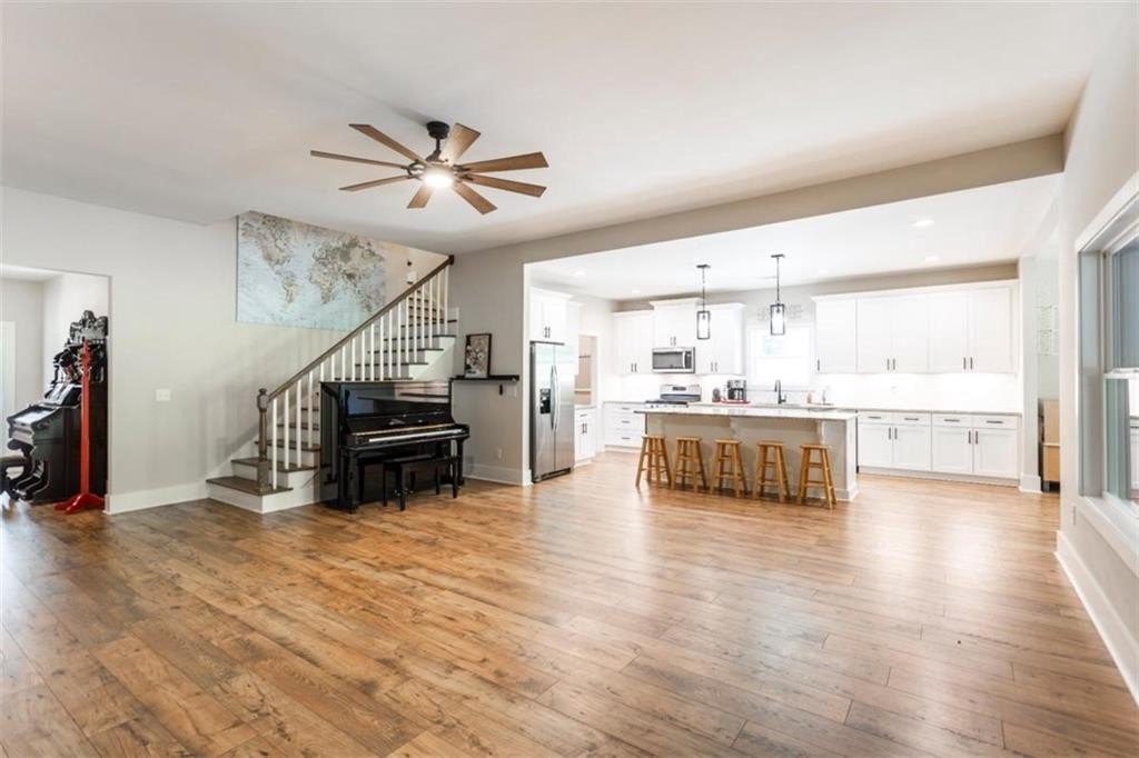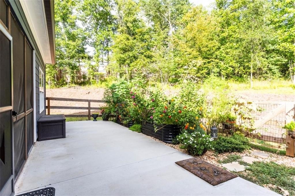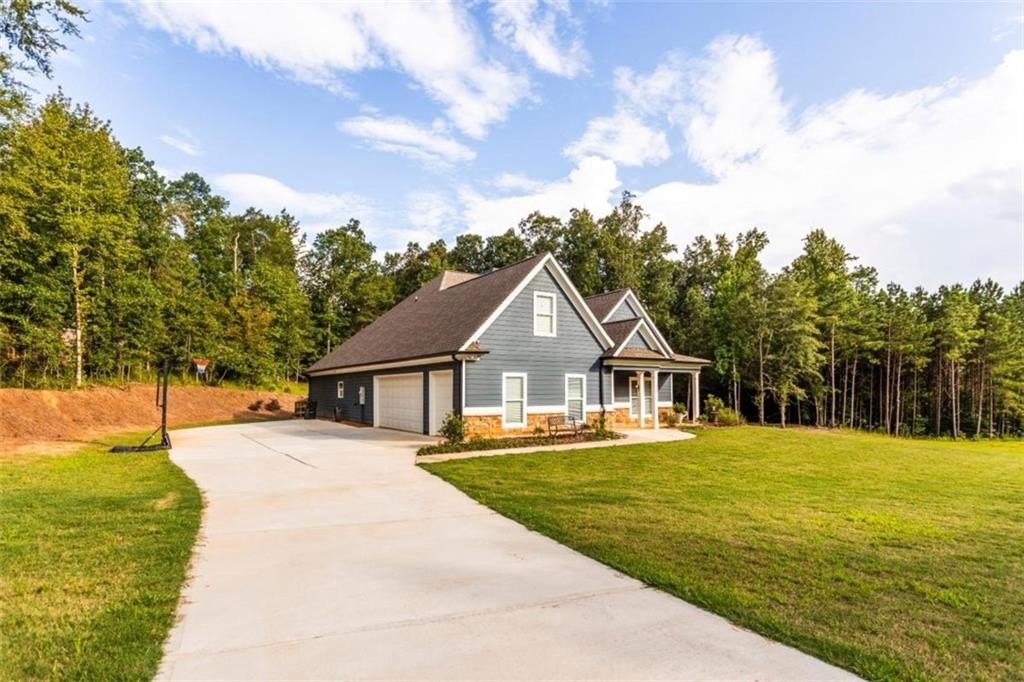 Your Modern Farmhouse Retreat Awaits! Nestled on a picturesque 2-acre lot in one of the area's most sought-after communities, this farmhouse-inspired beauty blends rustic charm with modern comfort. Step inside to a large open floor plan where the living room, kitchen, and dining area flow effortlessly-perfect for lively gatherings or cozy nights in! The chef's kitchen shines with sleek stainless steel appliances, a stylish breakfast bar, and plenty of counter space for your culinary creations. Relax in the peaceful screened-in porch, or host unforgettable BBQs on the adjoining patio while enjoying tranquil views of the backyard. The fenced side-yard offers a secure haven for pets and kids, and the level grounds are ideal for gardening, play, or simply soaking up the sunshine. The oversized owner's suite is a true retreat, complete with a spa-like bathroom featuring a spacious tiled shower. Two additional bedrooms and a full bath are conveniently located on the main level, while upstairs offers a versatile bonus room with its own private bath-perfect as a guest suite, home office, or game room. And with a small third bay garage, you'll never run out of space for vehicles, hobbies, or storage. Another great feature for the area according to the current owner is that you are in Zone 5 and can choose to go to Social Circle city schools. Come and See it while you can!