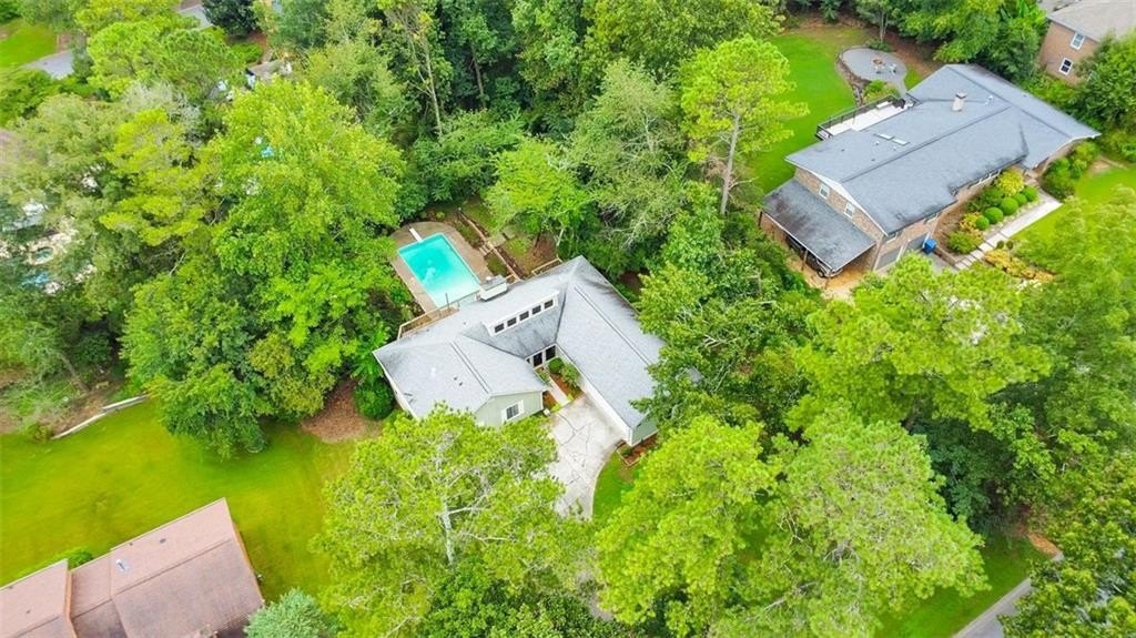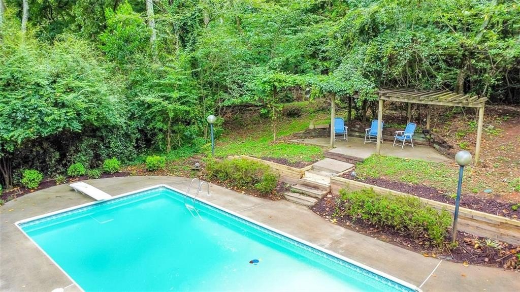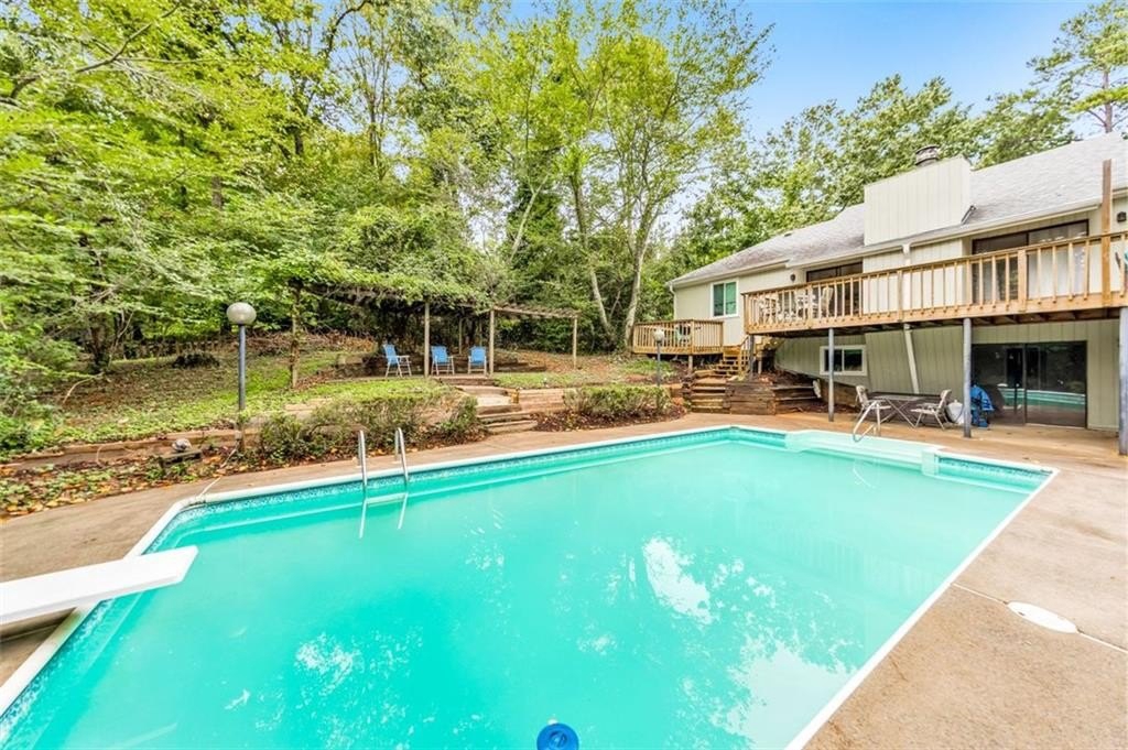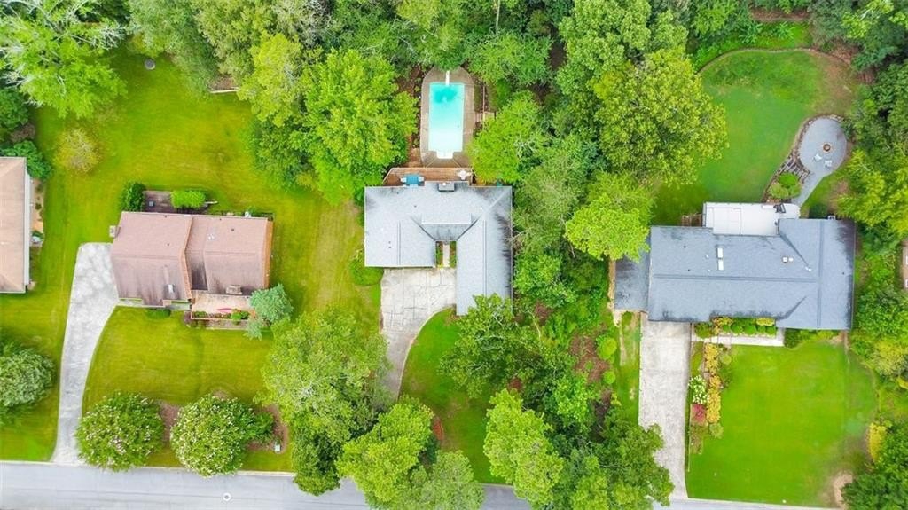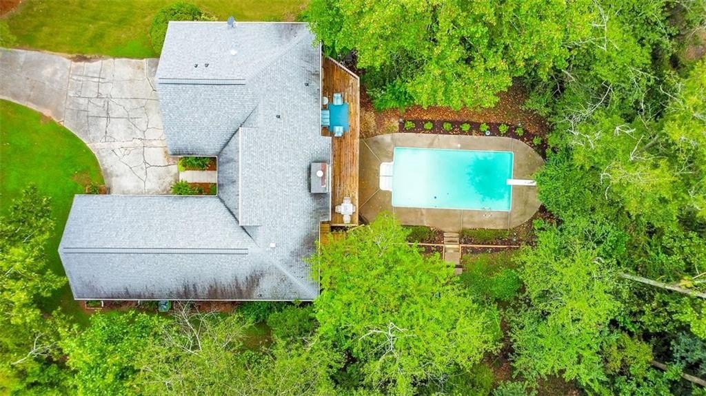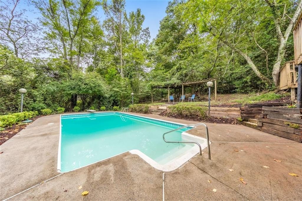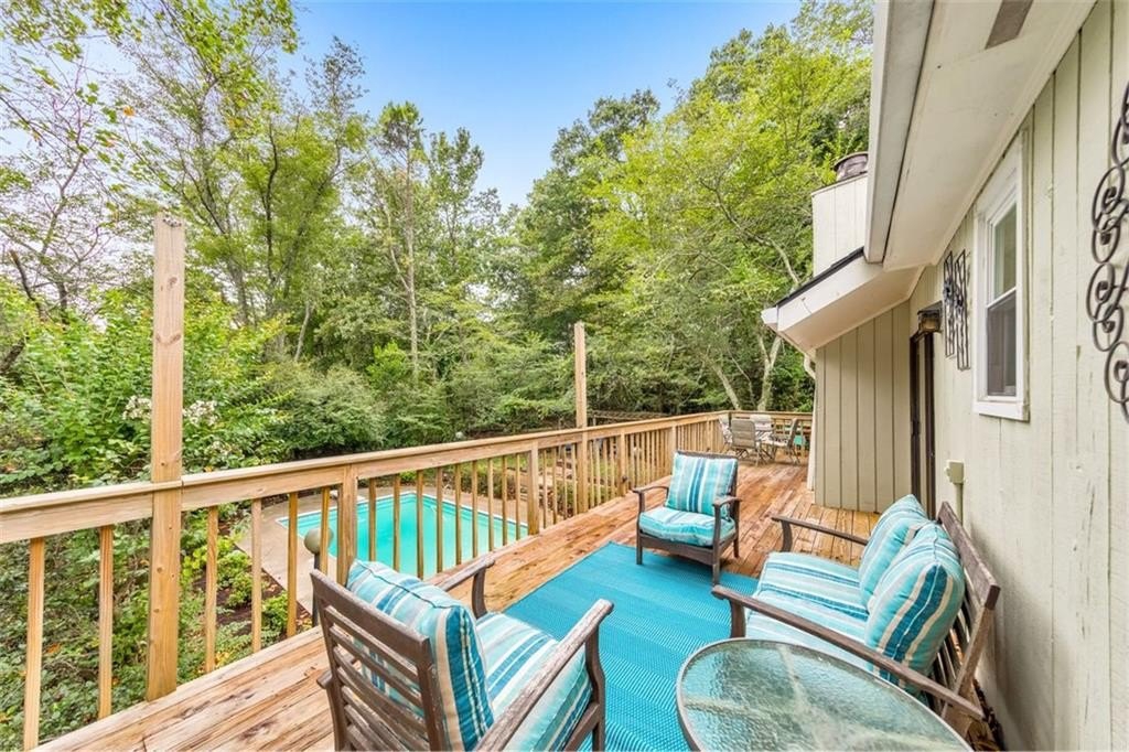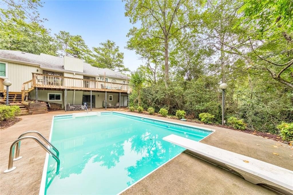 Welcome to this beautiful 4 bed / 3 bath ranch on a basement in a prime East Cobb location, nestled on a private lot with an inground pool. This charming home offers a functional layout and thoughtful updates throughout. Step inside to an inviting stone foyer that leads to a fireside living room with high ceilings and plenty of natural light. The DreamMaker kitchen, updated in 2020, features white shaker cabinets with soft-close doors, a beverage fridge, hidden seasoning rack, built-in bench with storage, hardwood tile flooring, a Thor 5-burner stainless steel stove, new dishwasher, and a new refrigerator. A pantry in both the kitchen and mudroom/laundry area provides excellent storage. Off the kitchen/dining area, a den offers a comfortable space for evenings with friends and family. The primary suite boasts a double vanity and a jetted tub/shower combo. Two secondary bedrooms share a hall bath accented with granite. Downstairs, the full basement features newer carpet and includes a bedroom, full bath, flex room, and a media room. Step outside to a backyard retreat featuring an inground pool with a vinyl liner, an elevated patio with pergola, and a deck ideal for grilling and relaxing. Additional highlights include most windows updated, newer gutters with gutter guards, and a fenced yard. The spacious garage has a new garage door, Iron Man storage system, and FastTrack system, all of which stay with the home. HVAC is less than a year old (14 SEER). Located in a great neighborhood with the option to join an active swim/tennis community!