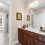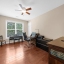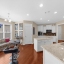 The great room offers open concept living with a gas fireplace, built-in speaker system, and spacious dining area with custom window placement to accommodate placement for a buffet or cabinet. The kitchen includes white cabinets, beadboard accents, granite countertops, Advantium halogen microwave, built-in oven, breakfast area, prep island, and walk-in pantry. The primary bedroom suite offers views of the trees, built-in speaker system, walk-in closet, jet tub, frameless shower enclosure, and vanity with dual sinks. The second and third bedrooms share a Jack and Jill bathroom with a tub/shower combination; the third bedroom has custom window placement, built-in speaker system and was used as an office.