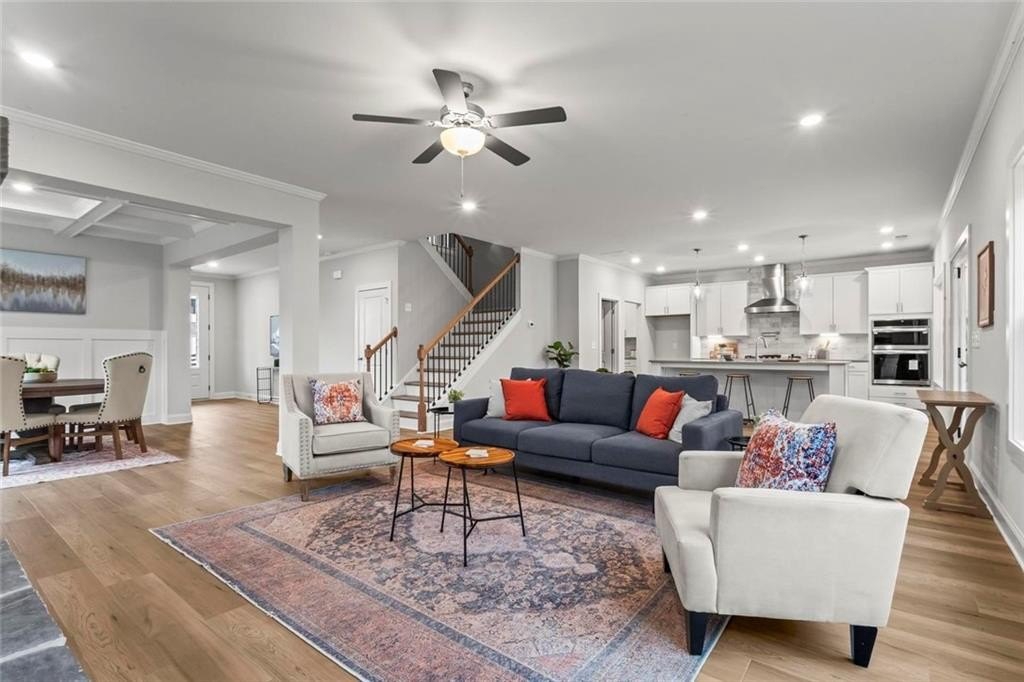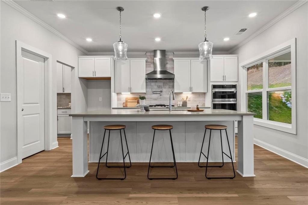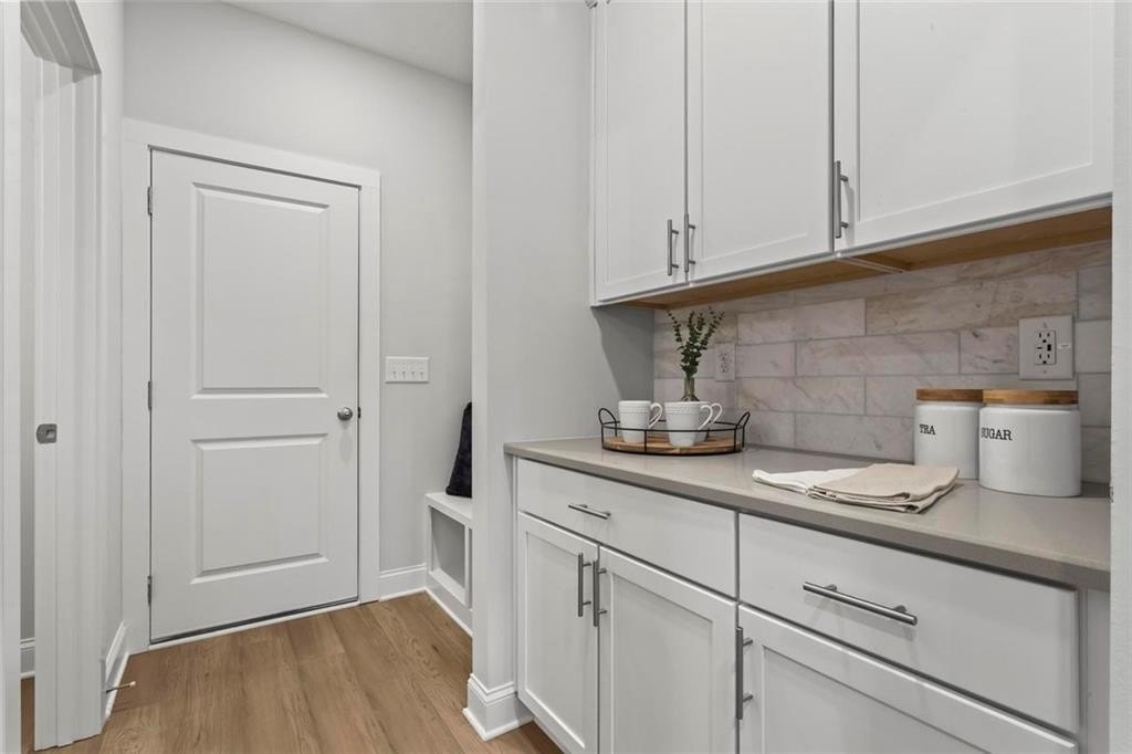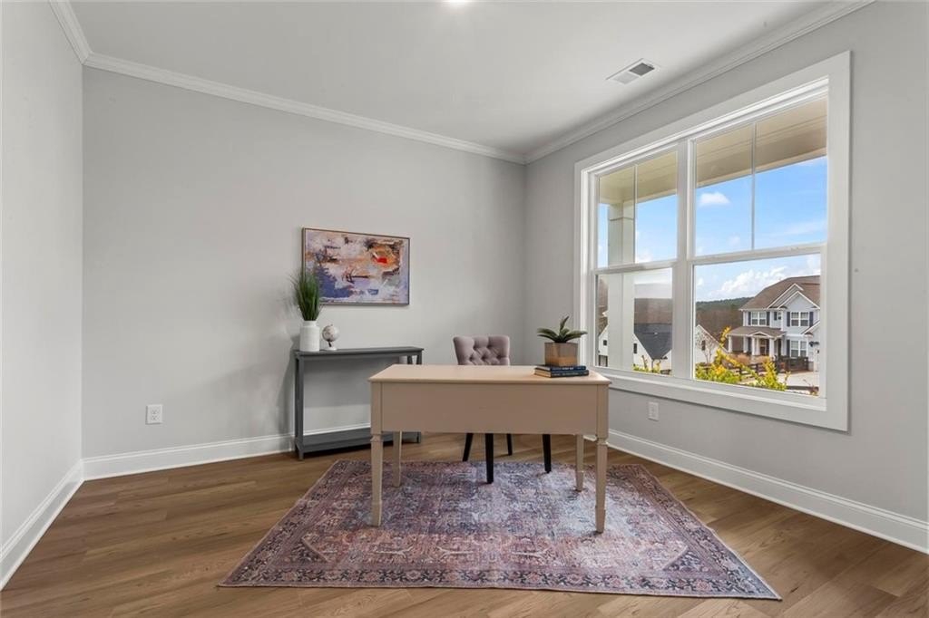 New construction and move-in ready! This two-story home offers a highly desirable layout with luxury vinyl flooring throughout the main level and up the stairs. Off the entry, the front room is versatile and ideal for a home office or playroom. The kitchen is thoughtfully designed with under-cabinet lighting, stainless steel appliances, a walk-in pantry, and a butler's pantry perfect for a coffee bar, along with an oversized island that overlooks the living room with a fireplace. Just off the kitchen, a built-in mudroom area creates a functional and organized transition from the garage. Formal dining with coffered ceilings sits off the living area, creating an inviting space for entertaining and gatherings, while the covered patio extends from the living and kitchen-ideal for additional living space or outdoor entertaining. Upstairs, the owner's suite features a spa bath with soaking tub, frameless shower, and walk-in closet. The upper level includes three secondary bedrooms, one with an en suite bathroom, plus a third full bath upstairs with double sinks. This rare and hard-to-find floor plan includes direct laundry access from both the primary bathroom and the hallway. An extended driveway with a third-car parking pad provides valuable additional parking. Located in NatureWalk at Seven Hills in Dallas, GA, this master-planned community offers wooded nature trails, a resort-style waterpark, Olympic-sized pool, pickleball courts, clubhouse, dog park, playground, sports fields, and year-round events led by a full-time activities director. Be sure to ask about the Seller's $10,000 contribution toward Buyer-paid closing costs!