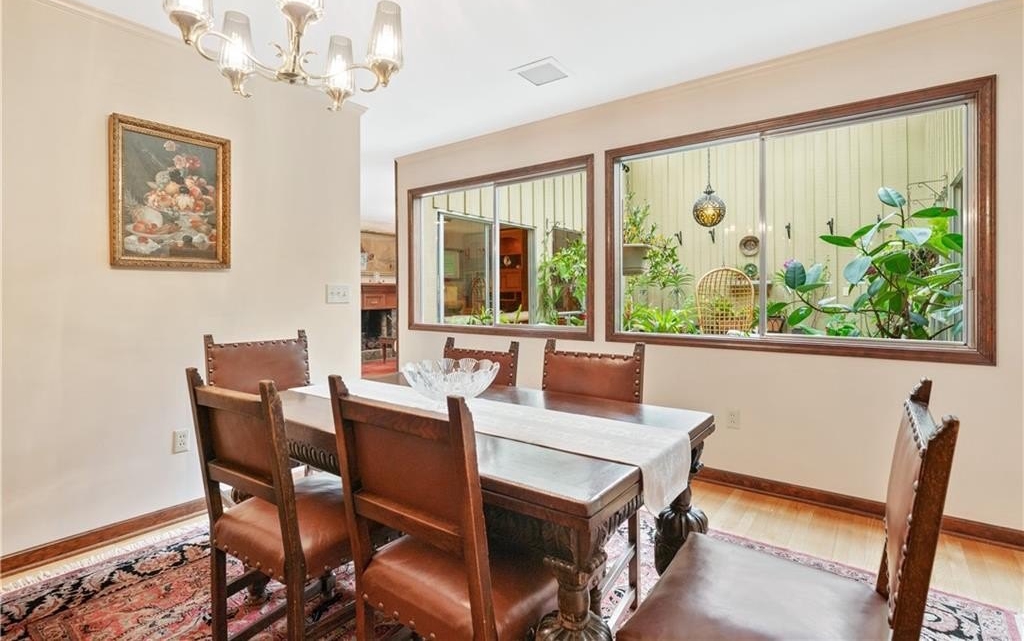Welcome to your charming English-inspired retreat! This meticulously maintained brick ranch home is a delightful blend of comfort and elegance, featuring an enchanting atrium that greets you as you step inside, filling the space with natural light and an airy ambiance. The main level showcases three generously sized bedrooms and two full bathrooms, providing ample space for relaxation and rejuvenation. All doors on the upper level are solid wood, adding a touch of sophistication and durability to the home. The expansive living and dining areas exude a warm, inviting atmosphere, perfect for entertaining guests or enjoying intimate family gatherings. The updated kitchen, adorned with modern appliances and tasteful finishes, is a chef's dream, inviting culinary creativity and delightful meals. Venture down to the finished basement apartment, a true haven for guests or potential rental income. Complete with its own full kitchen, a separate entrance, and additional office space, this area offers privacy and convenience, making it an excellent addition to the home. Step outside to discover your own picturesque garden oasis, featuring a charming greenhouse that beckons gardening enthusiasts and a newly updated deck that invites you to enjoy al fresco dining or tranquil evenings under the stars. With a total of five garage spaces, this home provides ample parking and storage options, catering to all your needs. Whether you seek a family residence with a touch of English charm or a savvy investment opportunity, this property truly has it all. Don't miss the chance to experience the unique allure of this brick ranch, beautifully framed by its stunning atrium. Schedule a showing today and step into a world of elegance and comfort!