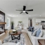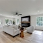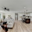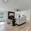 The heart of the home is the open concept living area, where a generously sized family room flows into a stylish kitchen complete with ample cabinetry, modern appliances, and tasteful finishes. An electric fireplace serves as the living room’s focal point, adding warmth and elegance.