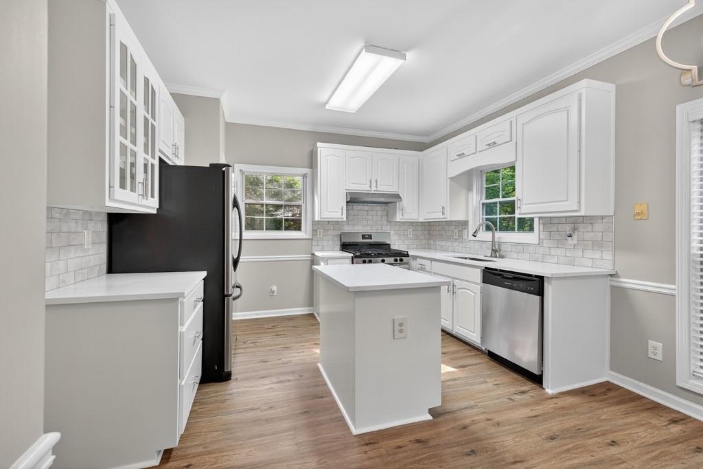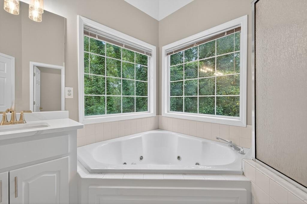 Beautifully updated and move-in ready two-story on a private 1.53-acre wooded lot. Fresh paint and new flooring throughout, plus stylish new lighting. Kitchen features quartz countertops, stainless appliances, and updated touches. Vaulted primary suite features spacious bath with quartz counters & double vanity, jetted tub, and separate tiled shower plus XL walk-in closet. Secondary baths have new Finished basement room with closet adds flex space. Roomy back deck overlooks peaceful wooded views often visited by deer and other wildlife. In a charming established neighborhood with a voluntary HOA, minutes to I-85, Hwy 316, downtown Lawrenceville, Mall of Georgia, and popular Collins Hill schools. A must-see, let's schedule your showing today
