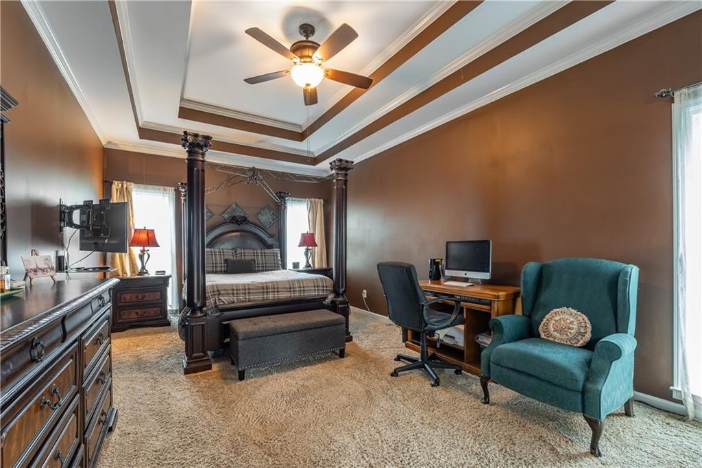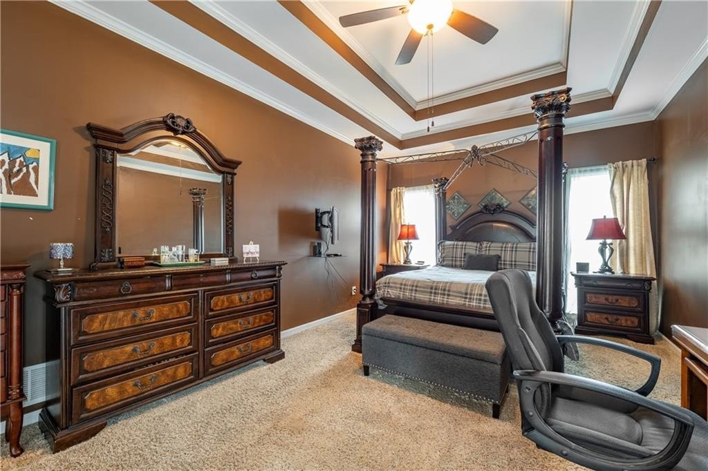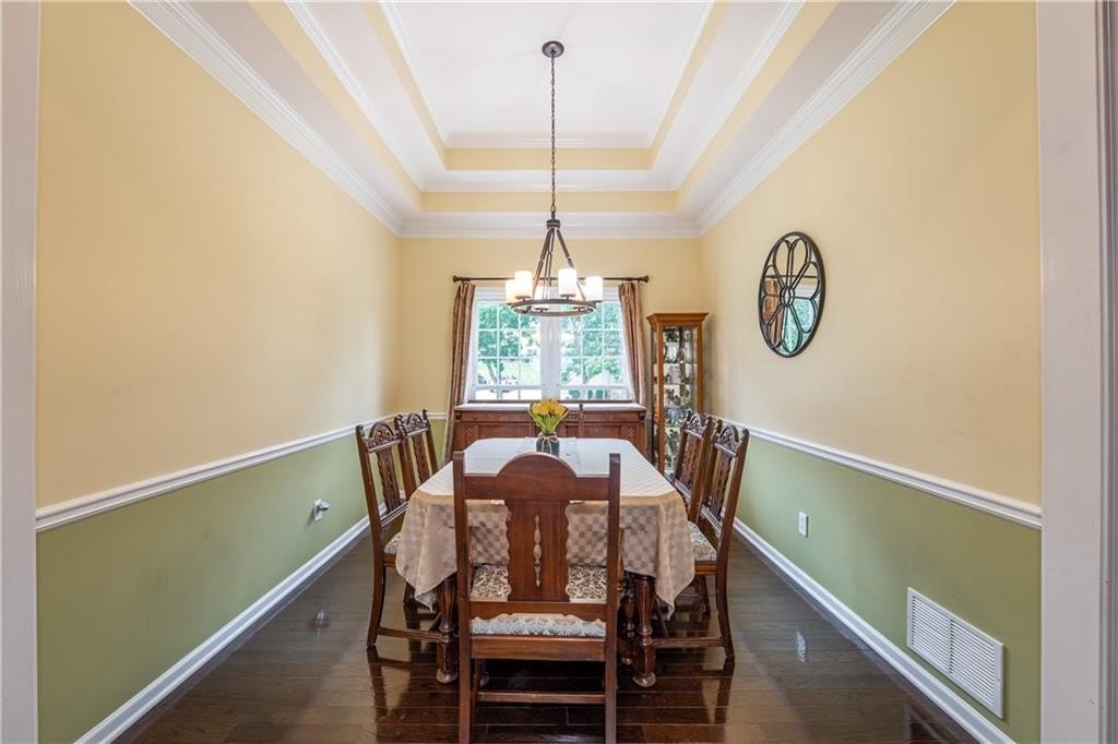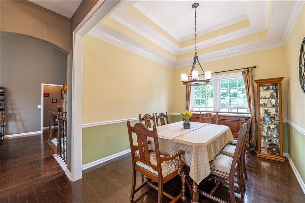 Inside, you’ll find character and charm at every turn: wood floors, tray ceilings, and crown moulding throughout. The spacious primary suite includes a walk-in closet and a luxurious bath with a jetted tub, separate shower, and double vanity. A separate dining room elevates everyday meals, while the fully finished terrace level—featuring 2 bedrooms, 1 bath, and direct outdoor access—offers incredible potential as a complete in-law suite.