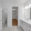 Retreat to the luxurious primary suite, featuring a spa-like bathroom complete with a waterfall shower head and bench seating, along with a walk-in closet. With its tranquil ambiance, this is the perfect space to relax and unwind.