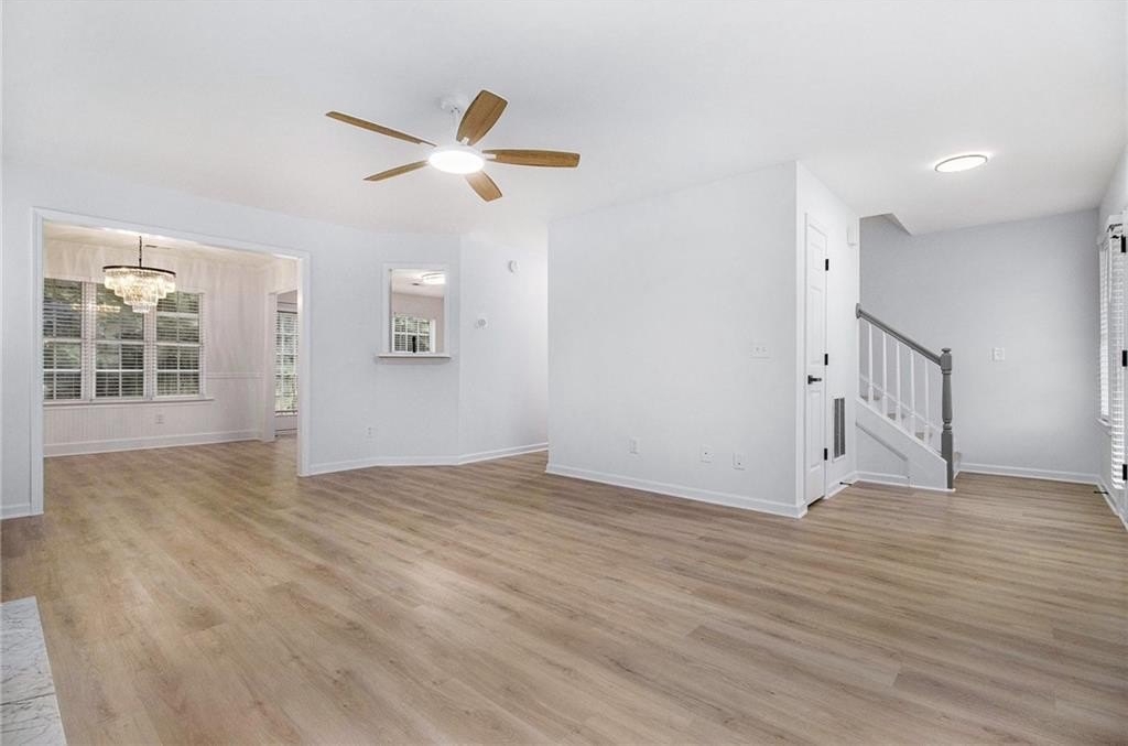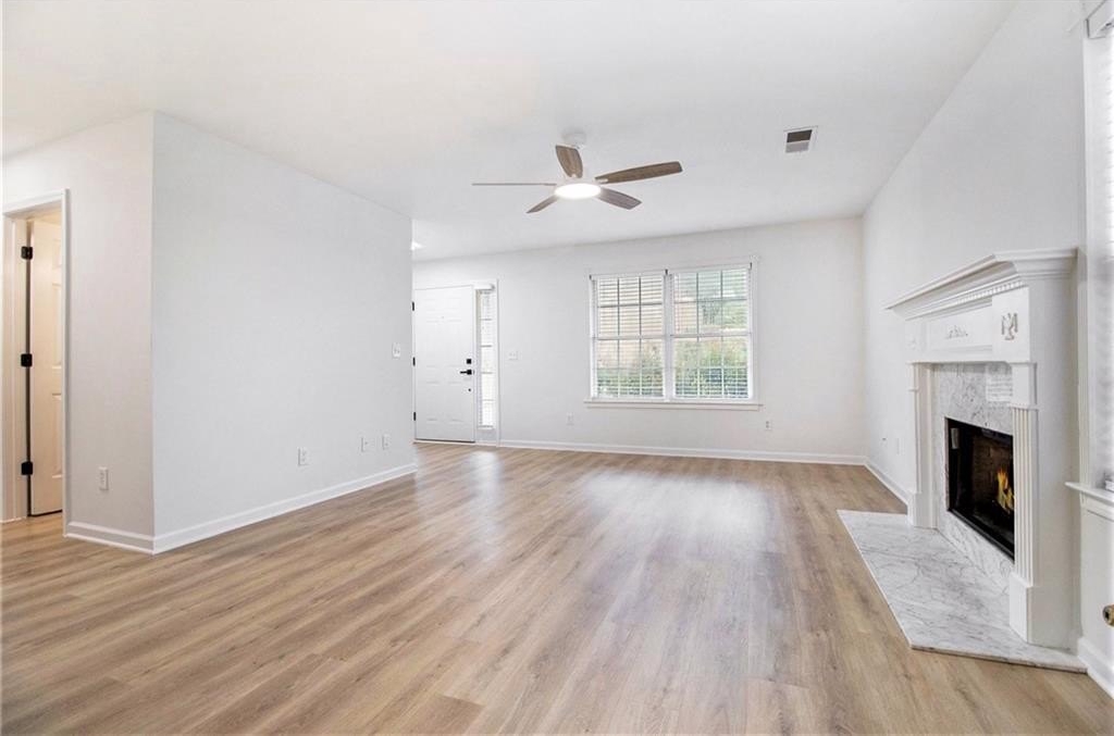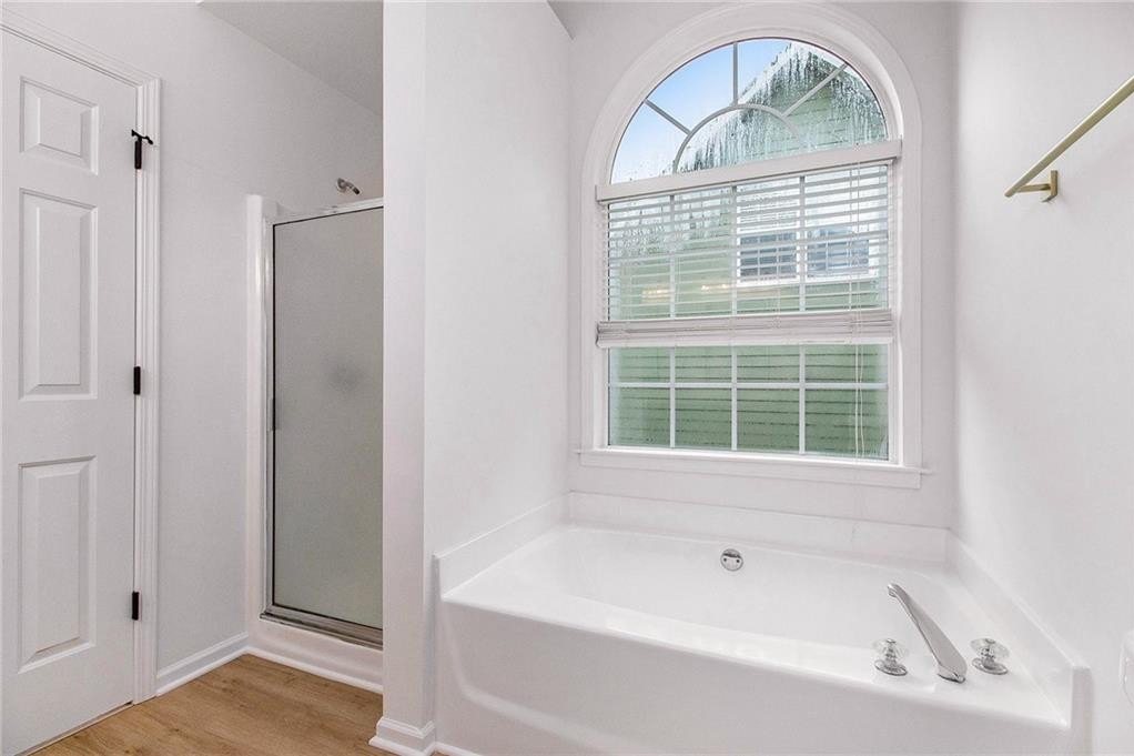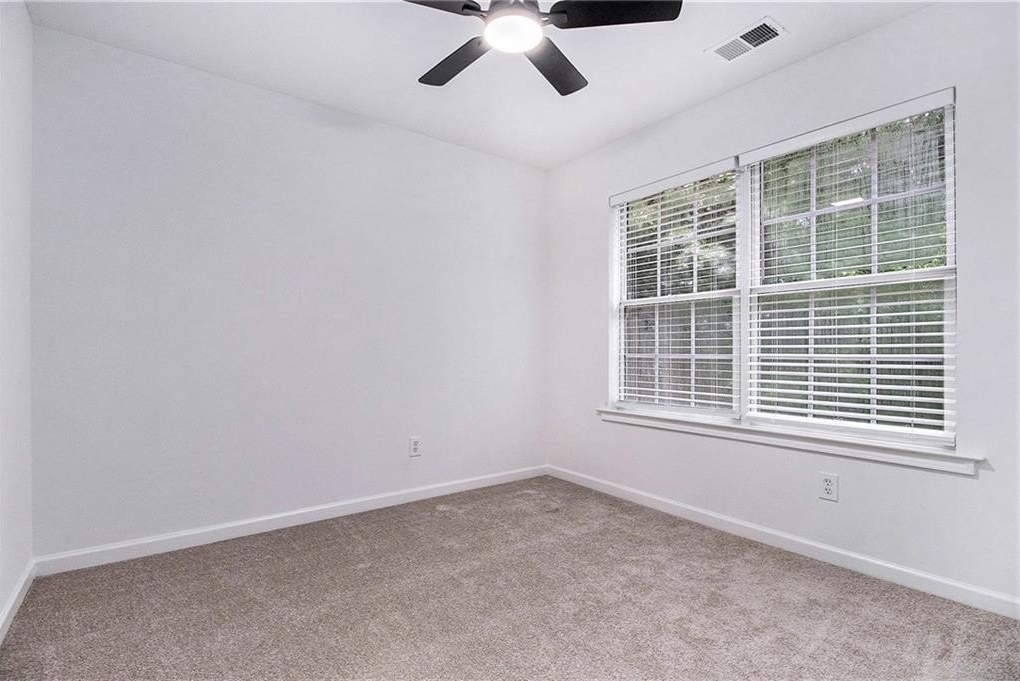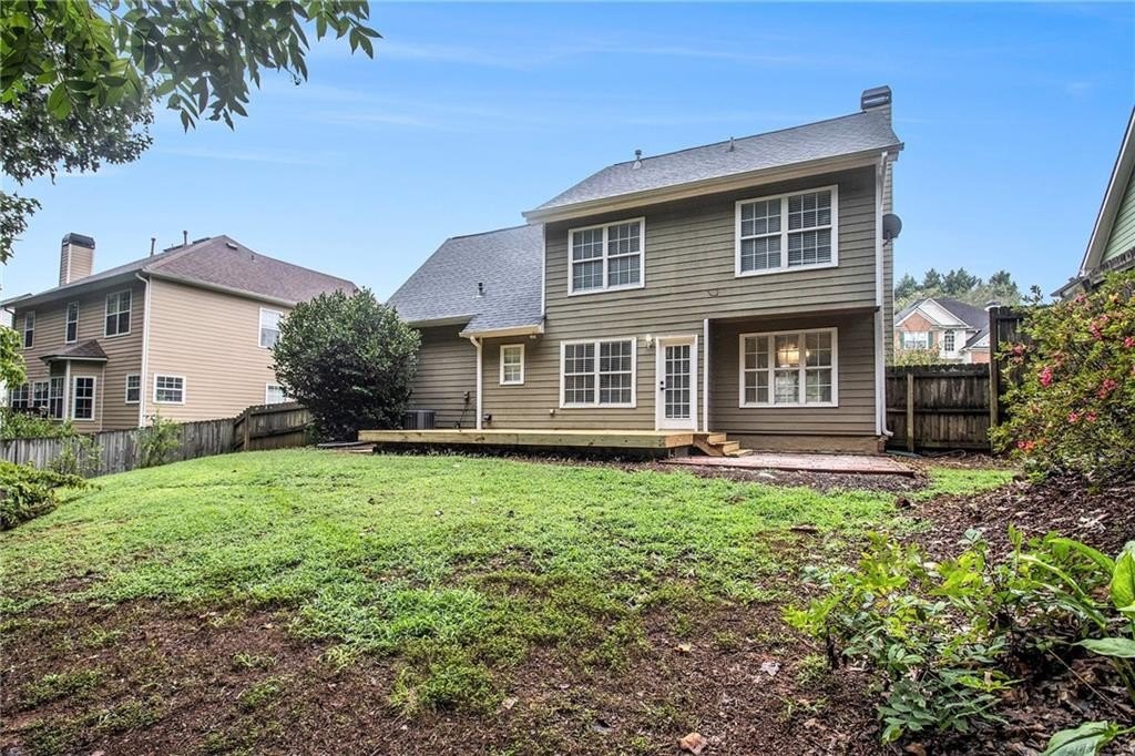 This beautifully updated two-story home offers four bedrooms and two and a half baths, showcasing a fresh, modern feel from top to bottom. Every surface has been refreshed with crisp new paint, while the main level features new luxury vinyl plank flooring and the upstairs boasts plush new carpet. The stunning kitchen is outfitted with new soft-close shaker-style cabinetry, sleek quartz countertops, and updated stainless steel appliances. All bathrooms have been upgraded with quartz-topped vanities, new metal-framed mirrors, updated plumbing fixtures, and new toilets, with the primary suite offering a spa-like retreat complete with a stand-up shower, soaking tub, and double vanity. Throughout the home, you’ll find brand-new LED lighting, stylish fans, and updated fixtures. Step out to the brand-new deck overlooking a private, wooded backyard—free from power lines—for a peaceful escape. Practical updates include a roof that’s approximately one year old, plus HVAC and water heater systems just six years young. Perfectly situated near shopping, I-75, Kennesaw State University, and The Battery, this move-in ready home blends style, comfort, and convenience.