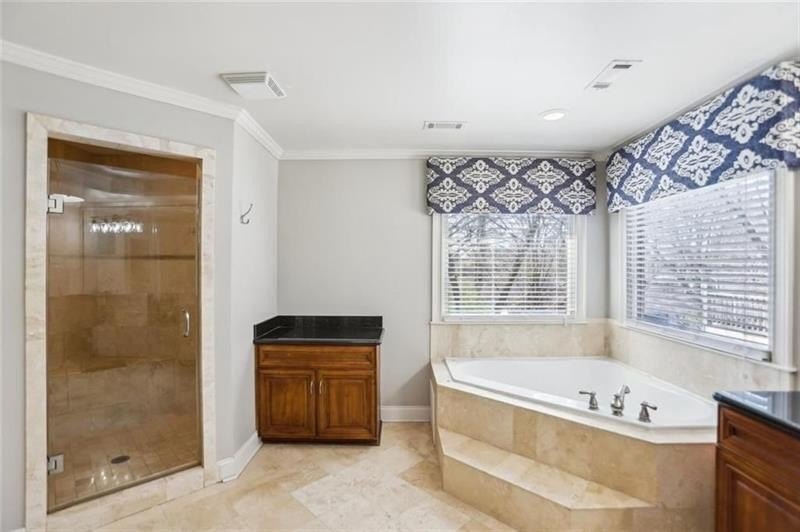 BACK ON MARKET AT NO FAULT OF SELLER!! Presenting a rare opportunity to own a stunning home of this size in the desirable and popular Riverside neighborhood! Offering over 4,500 square feet of beautiful living space, from the moment you walk through the front door, you'll immediately appreciate the quality craftsmanship and timeless elegance of this home. The main floor features an open-concept layout, with a spacious living room, formal dining area, and a modern kitchen-perfect for both everyday living and entertaining. Custom-built bookcases frame a cozy fireplace, while the kitchen, with its large island and thoughtful details, creates a warm, inviting atmosphere for family and guests. A generously-sized flex room with an en-suite bathroom offers even more possibilities, whether as a den, home office, or potential guest suite. Outside, a peaceful deck overlooks the level, fully-fenced backyard, offering a quiet retreat. Upstairs, the primary suite is a true highlight, with tiered tray ceilings, an oversized walk-in closet, and a beautiful bathroom that feels like a spa. The primary suite also boasts its own private deck for tranquil moments. Two additional spacious bedrooms upstairs share a large bathroom, offering plenty of room for family or guests. The basement is the perfect private getaway, featuring a bedroom with an en-suite bath, along with a comfortable living area. It also has direct access to the backyard and the garage for added convenience. The two-car garage easily accommodates 2 large cars or SUVs, and has built-in storage racks and two separate entrances to the home. Riverside offers an ideal location, close to Buckhead, Smyrna/Vinings, and the West Side of Atlanta, providing easy access to all the best Atlanta has to offer. The home is in the sought-after school districts of Bolton Academy, Sutton Middle School, and North Atlanta High School, with prestigious private schools like Westminster, Lovett, and Pace Academy nearby. This home truly has it all-don't miss out on the chance to make it yours