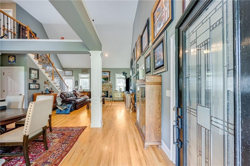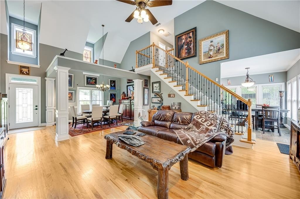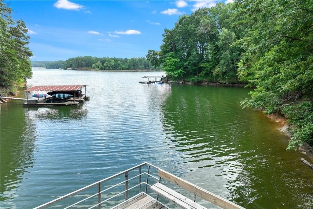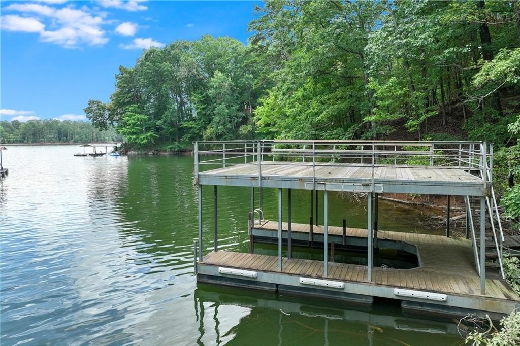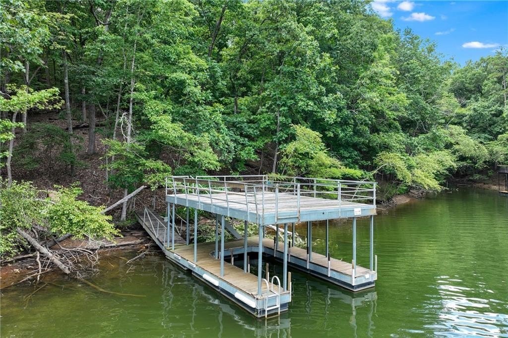 Lake Lanier retreat near the Olympic Park & Boathouse.  This well-maintained home (with a brand new roof) offers an open floor plan with a 2-story foyer opening to a great room with stone fireplace, tall ceilings, beautiful columns and hardwood floors. The main-level owner’s suite has trey ceilings and features a spa-like bath with deep whirlpool soaking tub and walk-in closet. The daylight terrace level includes a family room, flex space that's perfect for a media room or an office, full bath, and also abundant storage. Outdoor living space offers a covered grilling area, wrap-around deck, and serene wooded views. Enjoy a leisurely walk to the single-slip dock in a quiet, deep-water cove just off the Chattahoochee River channel. Ideal for full-time or weekend lake living—no HOA, no restrictions, just lake life at its best!  Incredible location on the lake and super close to shopping, restaurants and hospital.