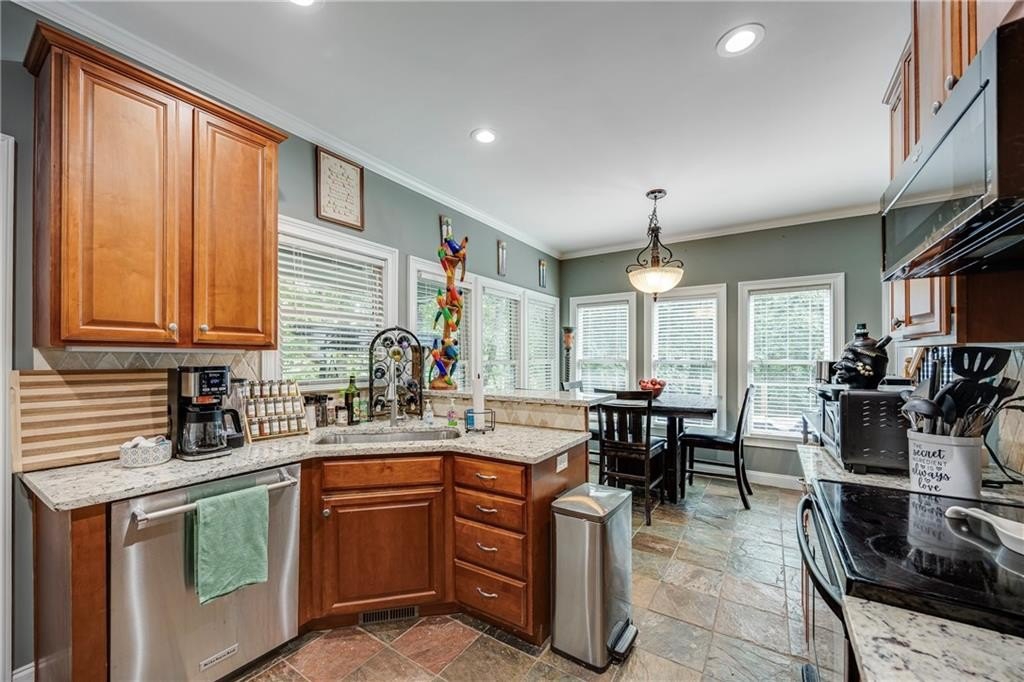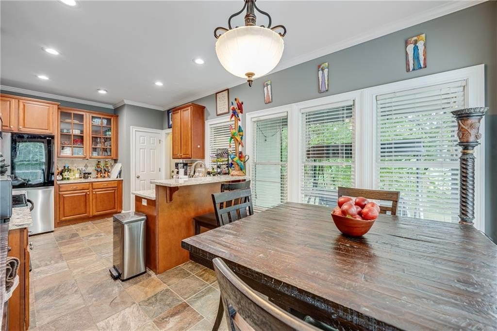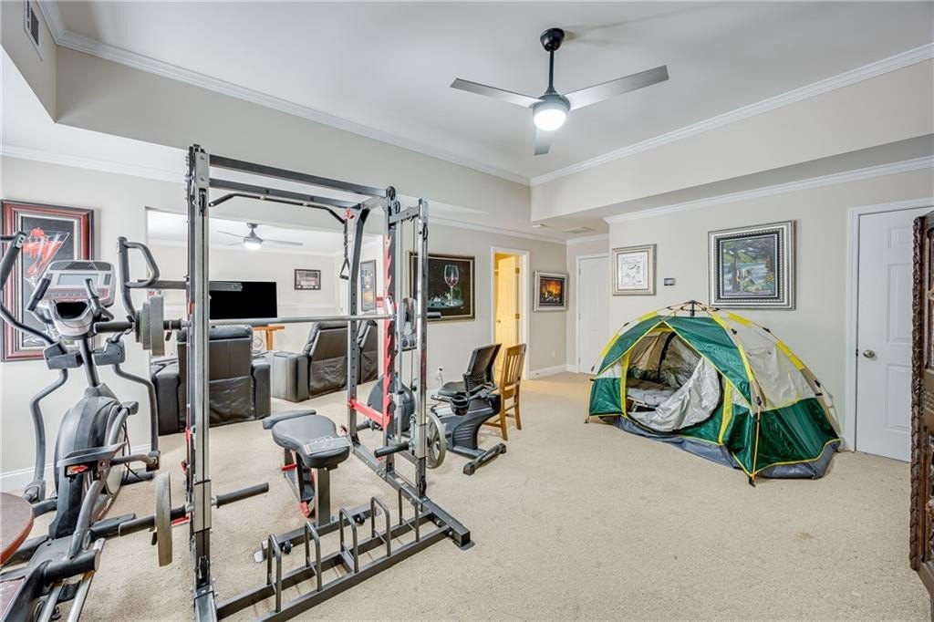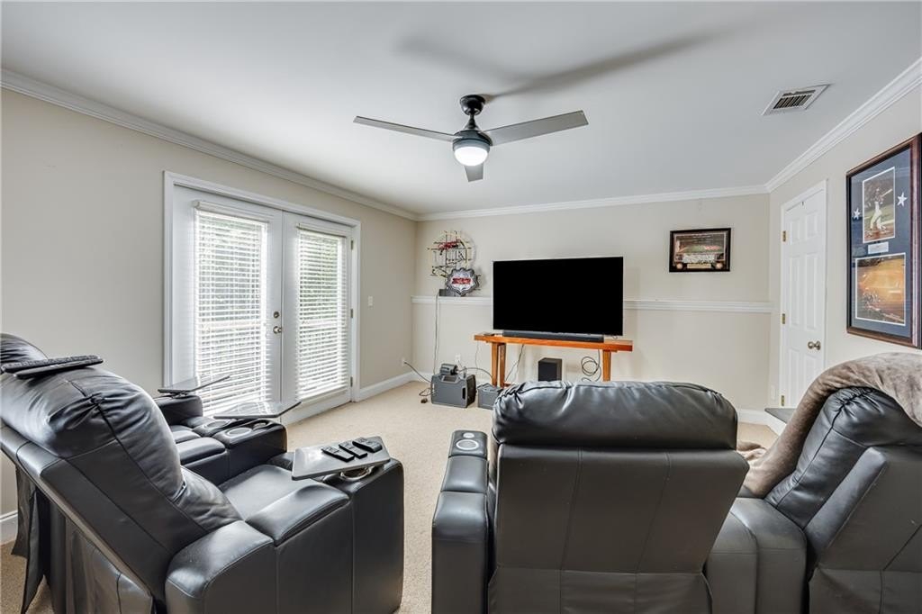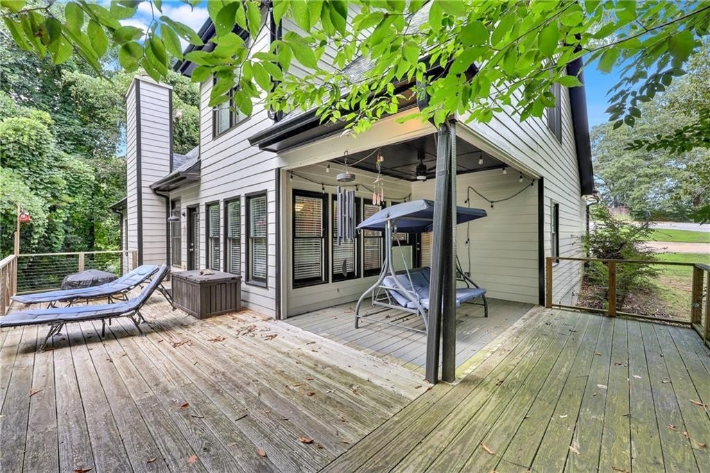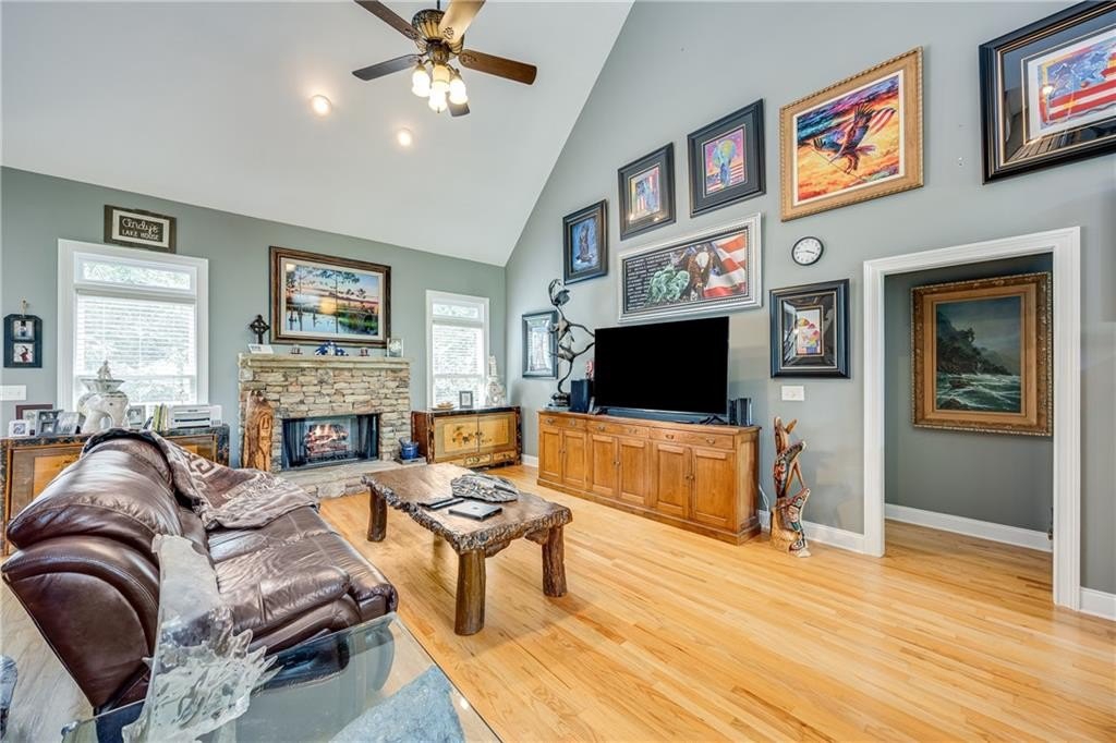 Lake Lanier retreat near the Olympic Park & Boathouse.  This well-maintained home (with a brand new roof) offers an open floor plan with a 2-story foyer opening to a great room with stone fireplace, tall ceilings, beautiful columns and hardwood floors. The main-level owner’s suite has trey ceilings and features a spa-like bath with deep whirlpool soaking tub and walk-in closet. The daylight terrace level includes a family room, flex space that's perfect for a media room or an office, full bath, and also abundant storage. Outdoor living space offers a covered grilling area, wrap-around deck, and serene wooded views. Enjoy a leisurely walk to the single-slip dock in a quiet, deep-water cove just off the Chattahoochee River channel. Ideal for full-time or weekend lake living—no HOA, no restrictions, just lake life at its best!  Incredible location on the lake and super close to shopping, restaurants and hospital.