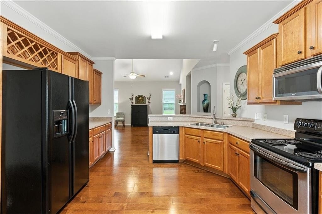 Welcome to 3637 Spring Beauty Court in Silver Springs Village – an active adult community in charming Powder Springs, GA. This beautifully maintained 2-bedroom, 2.5-bath ranch-style home offers comfortable, open-concept living on a private cul-de-sac lot. You're going to love this functional and unique floor plan! Step inside to a spacious Family Room and Dining Room with vaulted ceiling and a handsome brick, gas log fireplace. The bright Kitchen features an electric range, side-by-side refrigerator with ice and water dispenser, dishwasher, microwave, and two pantries, plus space for a breakfast table. The flexible layout includes a dedicated Office/Flex Room AND a light-filled Sunroom with windows and screens to enjoy all four seasons. The main-level Primary Suite features a tray ceiling, Sitting Room, and a spa-like bathroom with separate tub and shower, double vanity, and private water closet. A Laundry Room with folding table completes the main level. A generously sized secondary Bedroom on the upper level offers its own ensuite bath and closet—perfect for guests or hobbies. Find easy attic access there also. Enjoy one of the larger lots in the neighborhood with low-maintenance landscaping that has been meticulously cared for, a welcoming rocking-chair front porch, and a natural wooded backdrop. The 2-car garage features an epoxied floor, two openers, and newer gutters with gutter guards for easy upkeep. Recent Upgrades: HVAC replaced in 2023, new water heater, newer hardwood flooring and neutral interior paint. Silver Springs Village offers an active, low-maintenance lifestyle with amenities including a swimming pool, clubhouse, fitness facility, scenic green space with pavilion and fountain, trash pickup, and common area maintenance — all for just $79/month. Enjoy proximity to downtown Powder Springs, the Silver Comet Trail, the post office, public library, golf courses, shopping, dining, and easy access to Atlanta Hartsfield Airport. This home blends convenience, comfort, and community—schedule your showing today!
