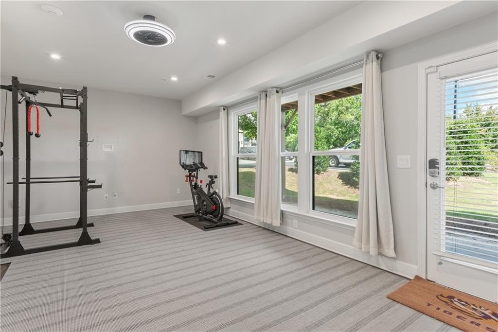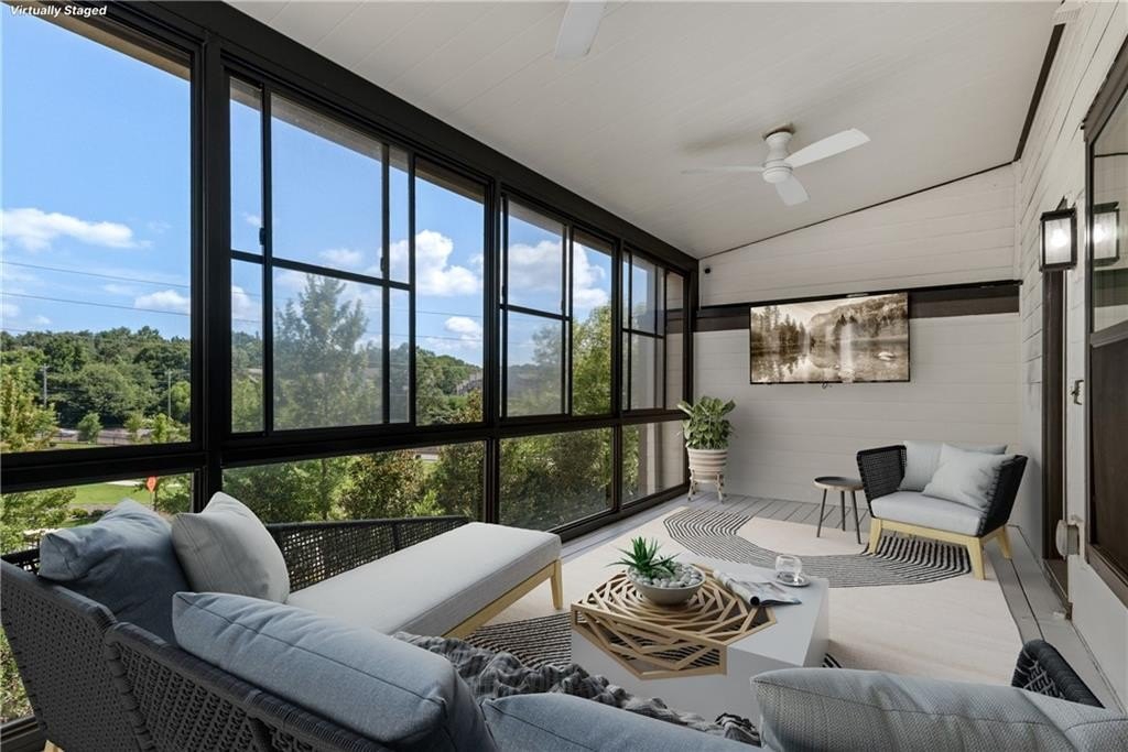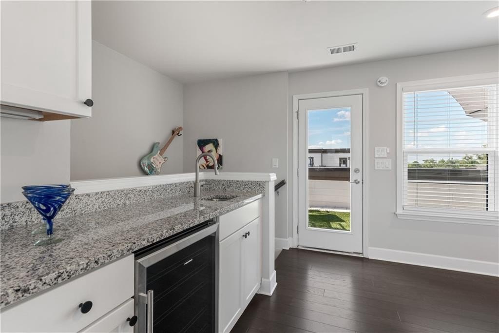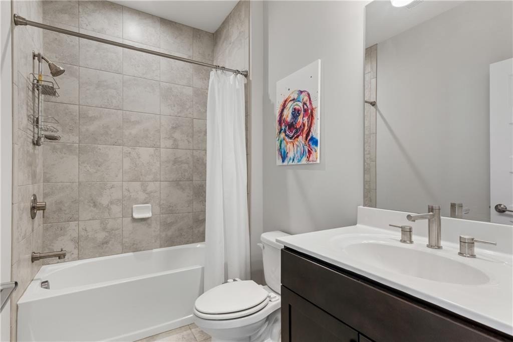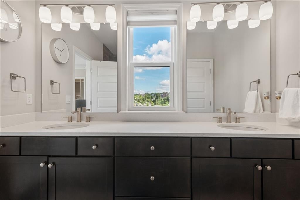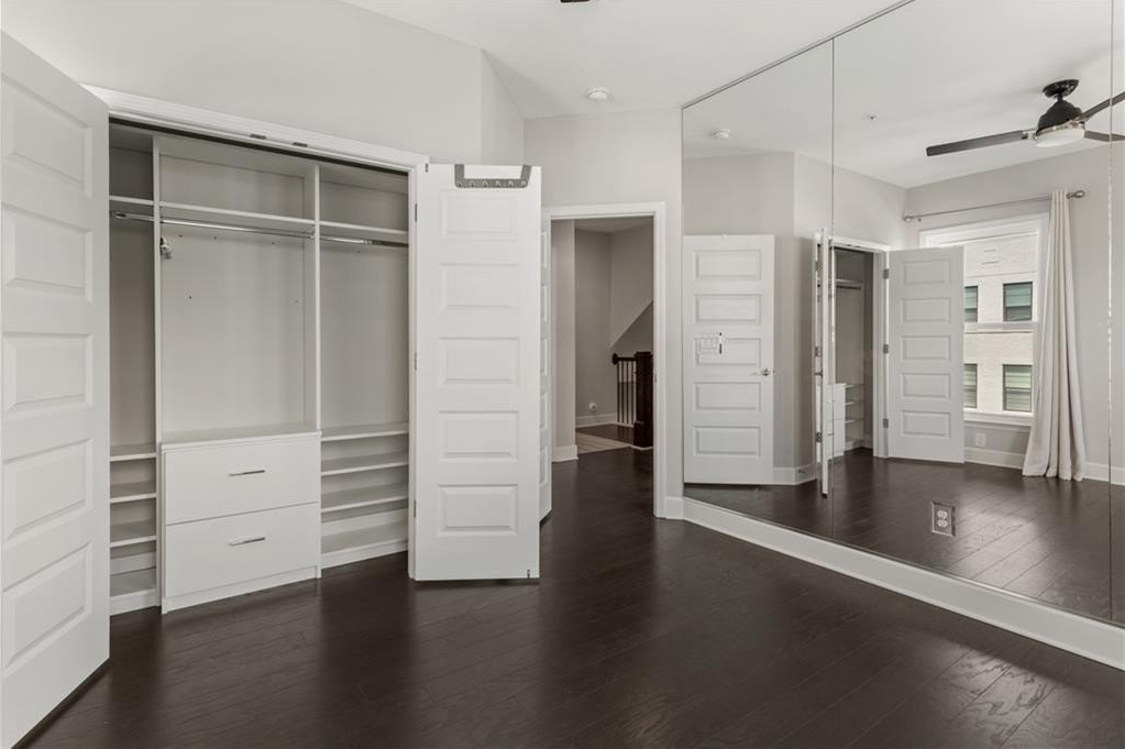 Stunning Luxury West Village 4-Level Townhome! This architecturally beautiful modern end-unit offers unparalleled rooftop views of downtown and midtown. Enjoy a live-work-play lifestyle with walkability to West Village's vibrant mix of retail, restaurants, and amenities, including gyms, salons, coffee shops, medical centers, and more. Conveniently located - minutes from the Battery, Buckhead, downtown Atlanta, Vinings, the Beltline, and Midtown, with easy access to I-75 and I-285, and zoned for desirable Cobb County schools. Unique Features to this unit: Screened porch addition on the main level* Custom built-in desk/office with high-end cabinetry * Wet bar with wine refrigerator in the top-floor game room * Custom fireplace on the main level * Espresso-stained hardwood floors throughout * Wrought iron railings, designer paint colors, shiplap accents, painted brick, and mirrored workout walls * Custom high-end sisal-style carpets * French doors to a Juliette balcony * Upgraded light fixtures and fandeliers * California Closet systems throughout * Hardwired UBIQUITY internet booster * ADT Security system with cameras, alarms, and mobile control * Artificial turf and deck wood tile on rooftop balconies * Covered terrace patio with greenspace access * Steps to community fire pit and dog walk * newer LG SMART INSTAVIEW refrigerator and Bosch dishwasher.