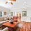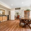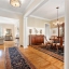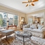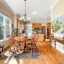 Inside, you’ll find a light-filled open floor plan designed with both everyday comfort and effortless entertaining in mind. The chef’s kitchen is the heart of the home, featuring an abundance of cabinetry, stainless steel appliances, double ovens, a custom walk-in pantry, and a generous island perfect for gathering with family and friends. The adjoining family room is warm and welcoming, with oversized windows flooding the space with natural light, built-in bookcases for stylish storage, and a cozy gas fireplace. Gorgeous hardwoods flow throughout the main level, which also includes a private home office with peaceful front yard views and a large dining room.