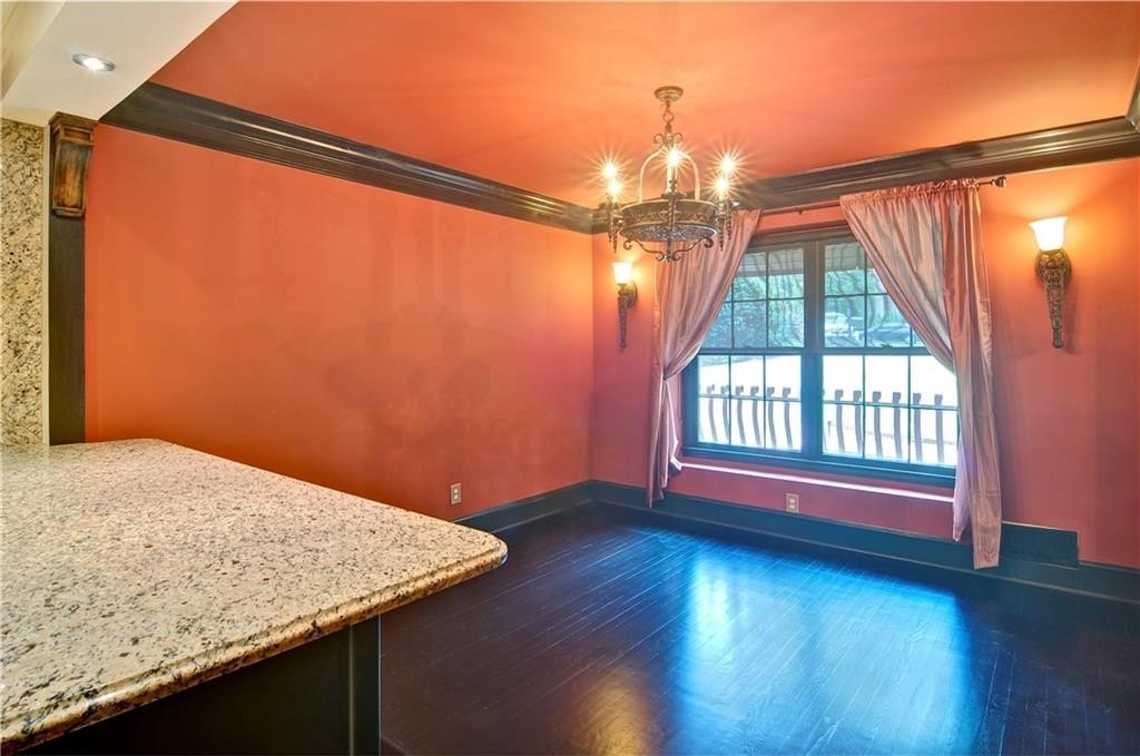 This amazing two-story home offers the perfect blend of modern luxury and comfortable family living. Upon entering, you are greeted by hardwood floors and elegant crown molding that flow throughout the main level. The spacious main floor boasts a huge family room featuring a cozy brick fireplace with gas logs and a gas starter. Additionally, you can entertain guests in the separate large living room or formal dining room. The chef's kitchen is a dream, with an abundance of cabinets, expansive granite countertops, a 6-burner gas stove, two ovens, and stainless steel appliances. Conveniently located off the kitchen is the laundry room, providing direct access to the 2-car garage. Off the family room, discover an oversized screened porch and a large open deck, perfect for outdoor relaxation and dining. Upstairs, the primary bedroom is a private retreat, featuring a large walk-in closet, vanity with beautiful granite and separate bath with a walk-in shower and two shower heads. Three additional large bedrooms, all with crown molding and hardwood floors, share a beautifully appointed hall bath with recessed lighting, granite counter top vanity and a tub/shower combination. All bedrooms feature ample closet space. The finished basement is an entertainer's paradise, offering a large finished room, a bar complete with cedar plank crown trim, a commercial bar fridge, icemaker, and a brand new dishwasher. A gorgeous full bath and two additional storage rooms with one being cedar-lined, complete the basement level.