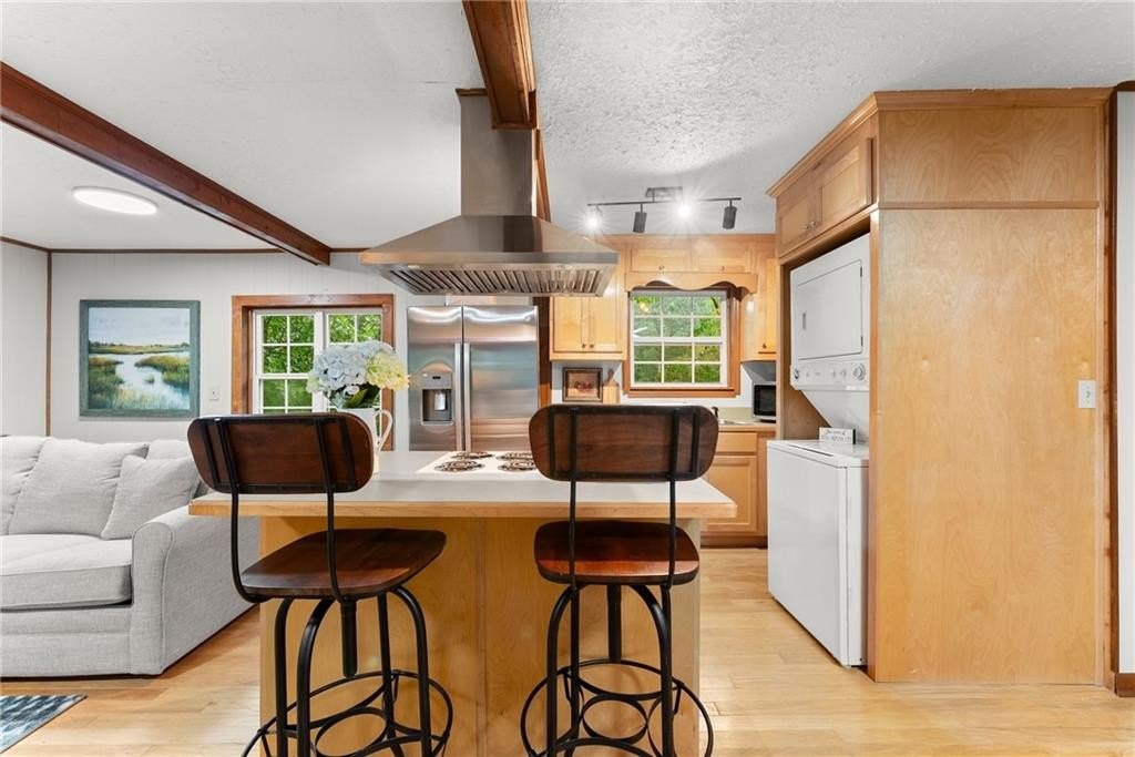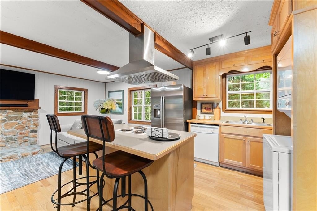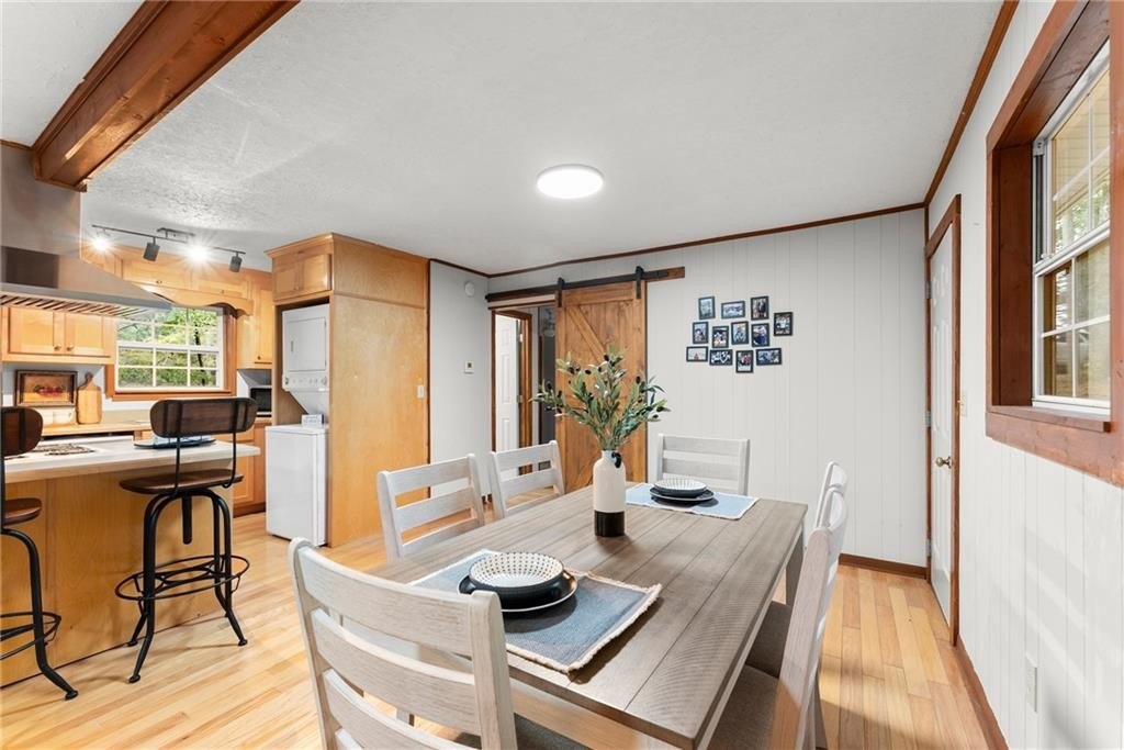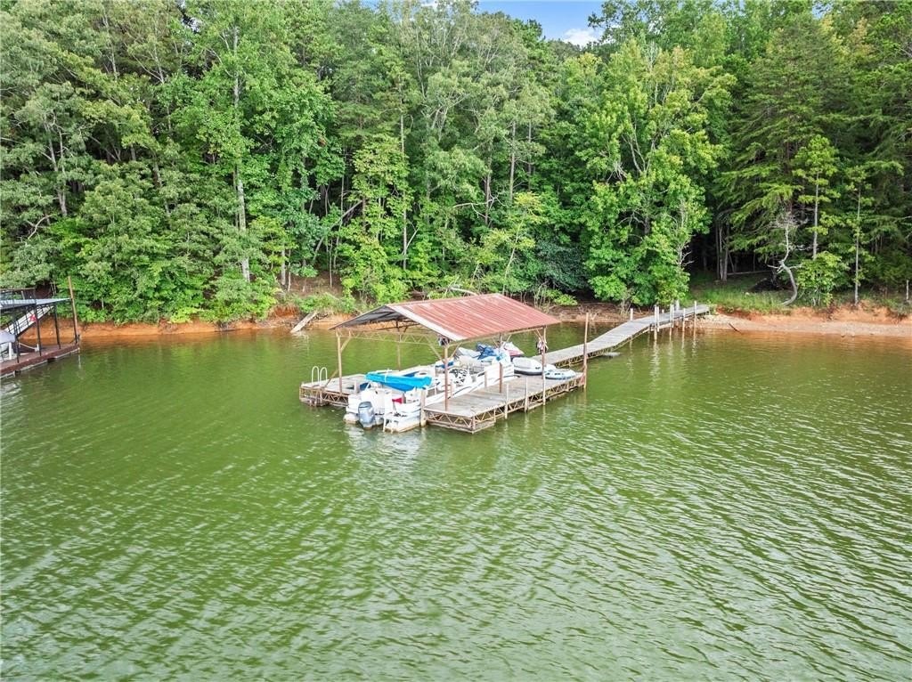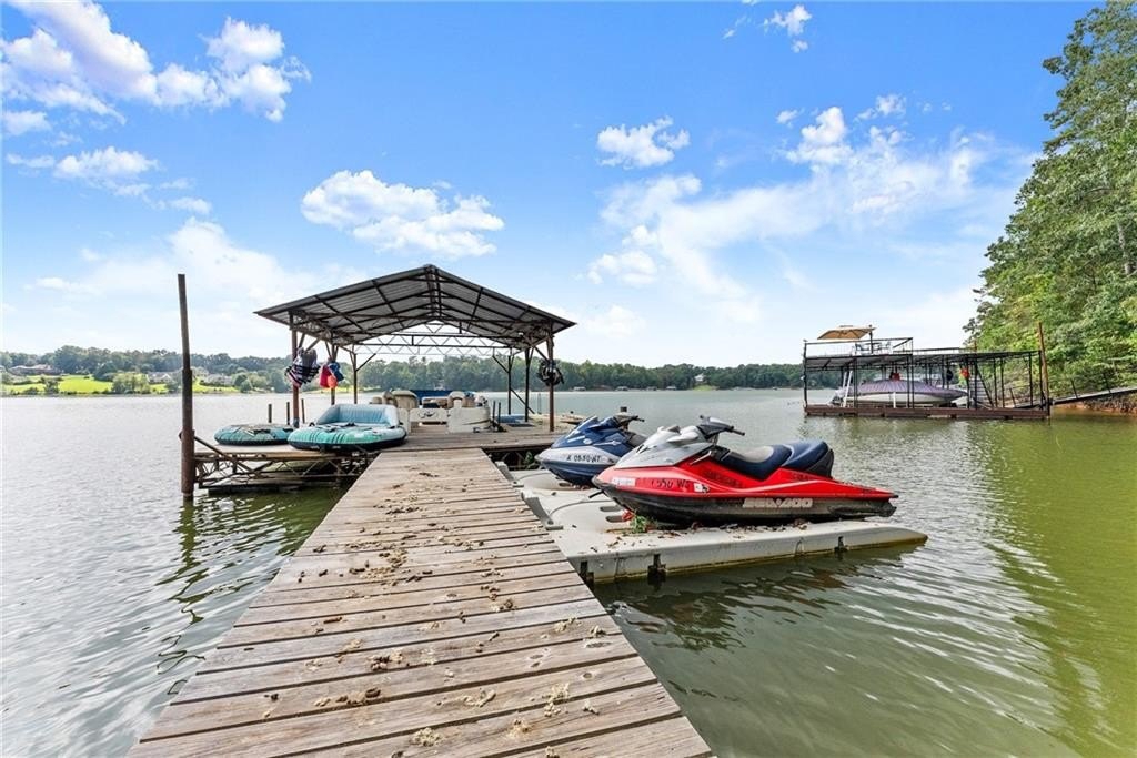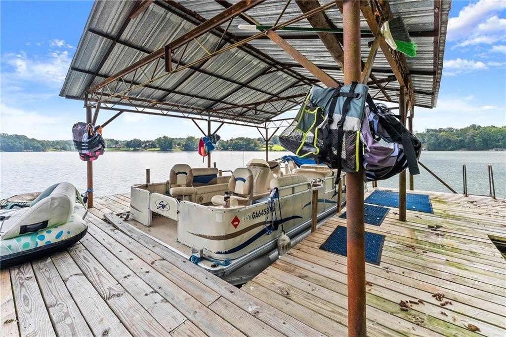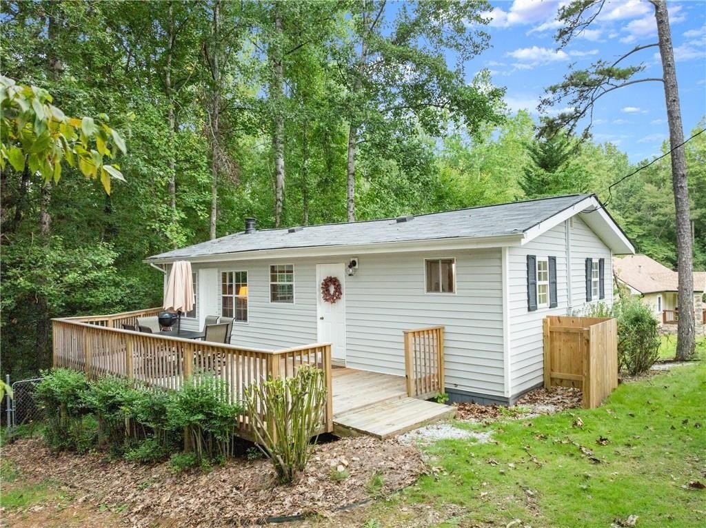 Come live where you play! This remarkable USDA eligible lake home is being offered as a complete lifestyle package. This charming fully furnished Lake Lanier cottage offers the perfect cozy lakeside retreat. The sale includes home furnishings, a pontoon boat, and two Sea-Doo jet skis! Discover your dream lake home with a single-slip dock in serene waters with stunning views. Located on desirable Wahoo Creek, ideal for those seeking a quieter, more intimate experience on Lake Lanier. The large body of water is perfect for paddle boarding, wakeboarding, wake surfing, kayaking, tubing, skiing, and fishing. Relax on the large, inviting front porch with seasonal lake views, perfect for enjoying the beauty of nature year-round or star gazing at night. The home features a timeless, fun-loving design with a casual living area, eat-in kitchen, private bedroom with ample storage, and ensures comfort and style without sacrificing space. Earthy elements like warm wood tones and stone accents complement the cozy furnishings. Whether you're a first-time buyer looking for a charming lake home, a retiree seeking a peaceful and scenic environment, or someone in search of a vacation home with plenty of recreational opportunities, this property caters to a wide range of needs and lifestyles. Recent enhancements include a new deck, new vinyl siding, and a re-decked dock. The property also features a newer heat pump (2021) and roof (2019). Enjoy picturesque lake views in the summer and breathtaking lake and sunset views in the fall and winter. Just minutes from Lake Lanier Olympic Park and downtown Gainesville, this home offers easy access to adventure and relaxation. Step right in and begin enjoying the best of lake life from day one!