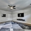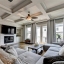 Enjoy the convenience of an oversized two-car garage, ample storage, and a private outdoor space perfect for morning coffee or evening relaxation. The fireplace is placed against a stone tile wall. The home has nest thermostats and Z-Wave compatible light switches to easily set up a smart home.