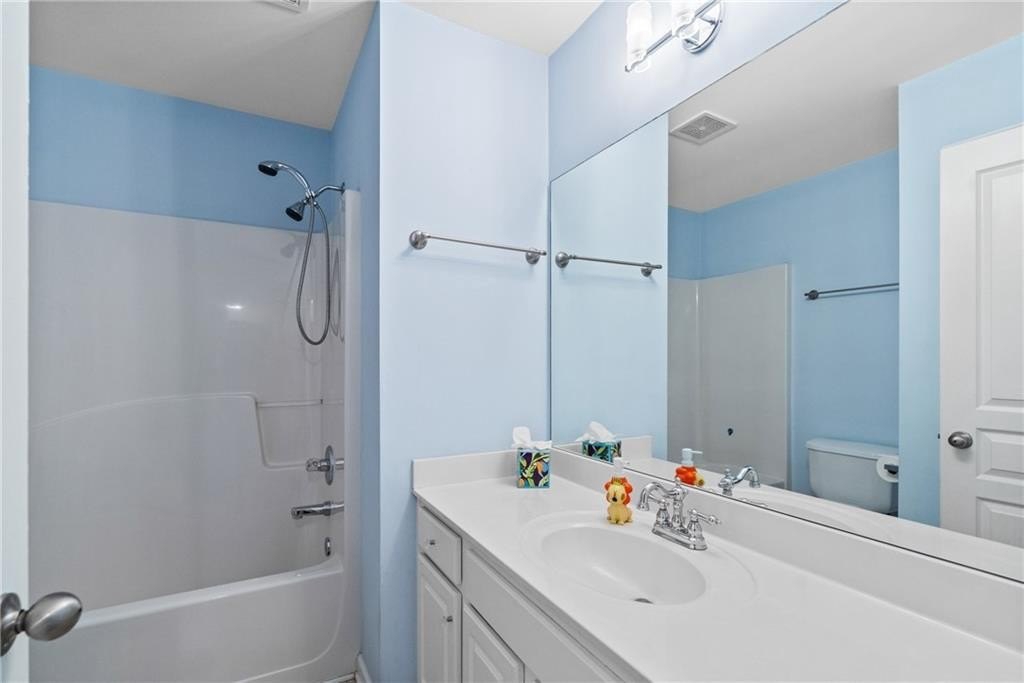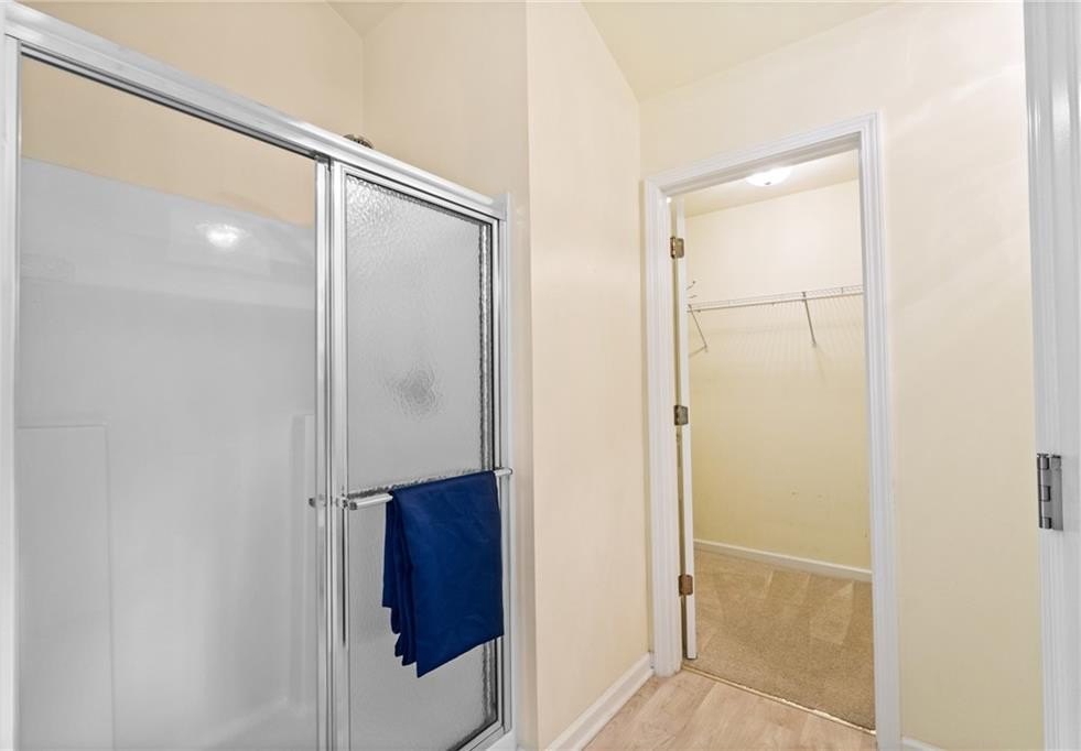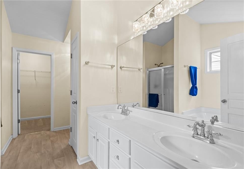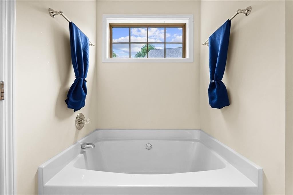The generous primary suite features a separate flex space—ideal for a home office, nursery, or cozy reading nook—plus a large walk-in closet and luxurious en-suite bath with a soaking tub, double vanity, and separate shower.