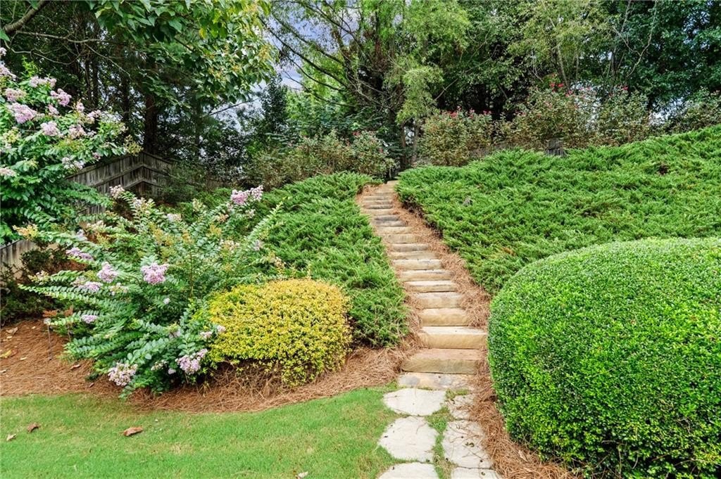 Step outside to your own private retreat: a gorgeously landscaped backyard with a slate patio, perfect for hosting guests or simply enjoying a peaceful morning coffee.
