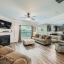 with a cozy fireplace. Upstairs, the primary suite is a true retreat, complete with double