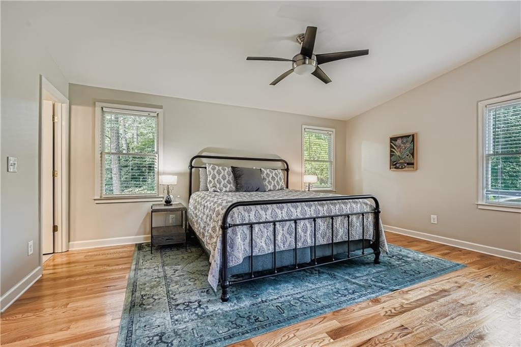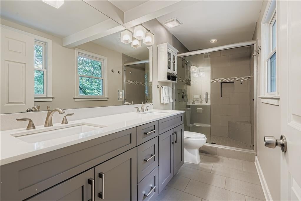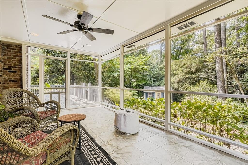 Your search for the iconic American Dream Home ends here. Stop scrolling and explore this classic Cape Cod in a highly sought-after Atlanta neighborhood and a top-tier school district (Lakeside HS). You'll be just a one-block walk to the STEM and French Immersion Evansdale Elementary School and two blocks to the back entrance of Northumberland Swim Club for summer fun. Looking for a renovated kitchen, renovated baths, and a massive primary bedroom suite? This is it. Plus, a separate, free-standing, air-conditioned (and heated) artist's studio, writer's retreat, or home office awaits you in the backyard. Step inside and let's explore. The entire home features hardwood and ceramic tile floors, a dream for anyone with allergies, and there's a convenient main floor bedroom and full bath perfect for multi-generational living or a home office. The showstopper kitchen features detailed custom cabinets, stone countertops, a Frigidaire gas range, and a quiet Bosch dishwasher. Relax in the family room with its pegged hardwood floors, brick fireplace with gas logs and glass doors, and built-in bookcases, or step out onto the screened-in porch for casual entertaining. The mudroom between the family room and two-car garage features a private staircase leading directly to the primary suite. Upstairs, the layout is unique thanks to a new renovation. All the bedrooms have hardwood floors. The oversized first bedroom has space for a king-sized bed, sitting area, and two closets. A newly renovated hall bath features a walk-in shower and a custom vanity. The second bedroom is currently a home office, but it would also make a great nursery, playroom, or standard bedroom. Walk through this room to find the laundry area and a second entrance to the stunning new primary suite, which has a vaulted ceiling, walk-in closets, and an elegant new bathroom with a spacious walk-in shower and a double vanity with stone countertops. The unfinished basement with a walkout to the backyard is a blank slate for you to create your own special space, whether it's a home gym, craft room, or a media room. The beautifully landscaped and fenced-in backyard has a spacious wood deck for grilling and a screened porch for enjoying your morning coffee. IMPORTANT UPGRADES - Nest thermostats. Water line and sewer line were replaced (2022). Cast iron sewer pipe in the basement was removed and replaced with modern plastic pipe. Driveway has been replaced. Retaining wall and professional landscaping in 2018. Three HVAC Systems: Primary bedroom suite has a separate HVAC system (2022), Main floor floor HVAC replaced in 2024, Second floor system, Plus split HVAC system in Back Yard Studio. NEIGHBORHOOD FEATURES: Walk one block to Evansdale Elementary School (located on same street). Walk two blocks to the back entrance of Northumberland Swim Club with lots of activities and entertainment during summer vacation. Affordable neighborhood club with a summer swim team. Nottaway Swim and Tennis Club is also nearby. Henderson Park with youth soccer leagues, tennis, playground, walking trails, a lake, world class birdwatching (really – it’s a thing) and a community garden is just around the corner. Commuters will love being able to access I-85 inside the perimeter and the easy access to Buckhead, Midtown, downtown employment centers. Shopping and restaurants at nearby Embry Hills and Northlake Mall district. Main Street Tucker is just around the corner and gives a great hometown vibe to restaurants and shopping.