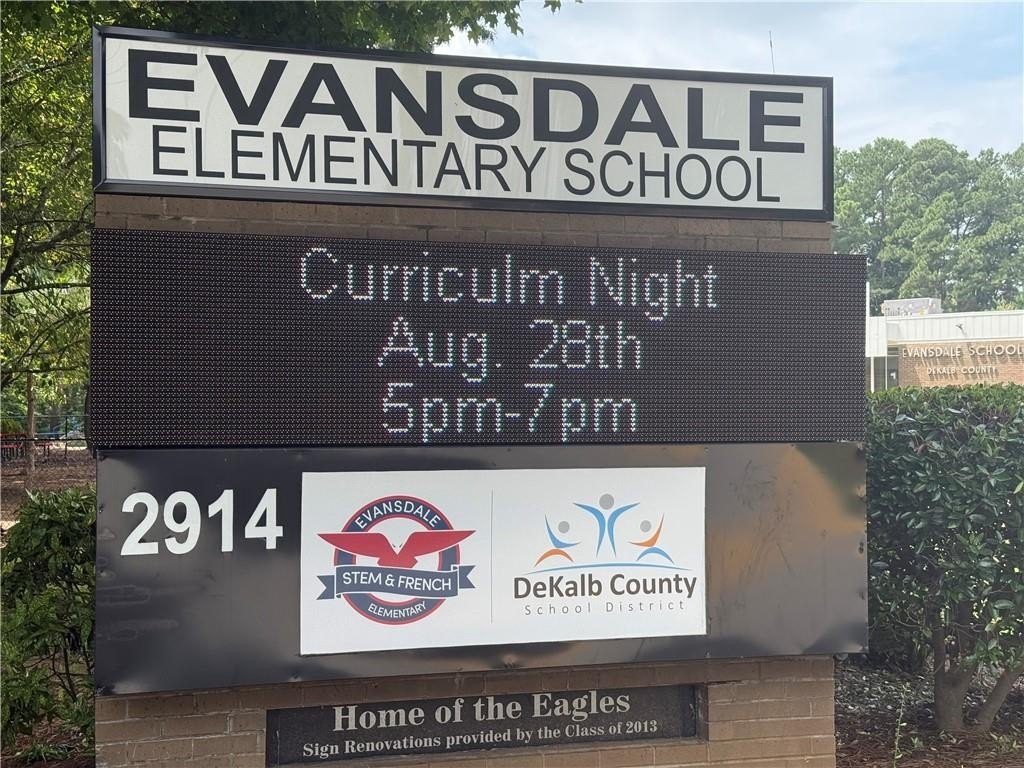 Emory-CDC-New Arthur Blank CHOA are an easy morning drive from this home. No interstate travel necessary. Evansdale Elementary is a Dual Language Immersion (DLI) school with a 50/50 model, half of a student's instructional time is in English and half is in French. Students are admitted by lottery in Kindergarten and continue in the program through the 5th grade.