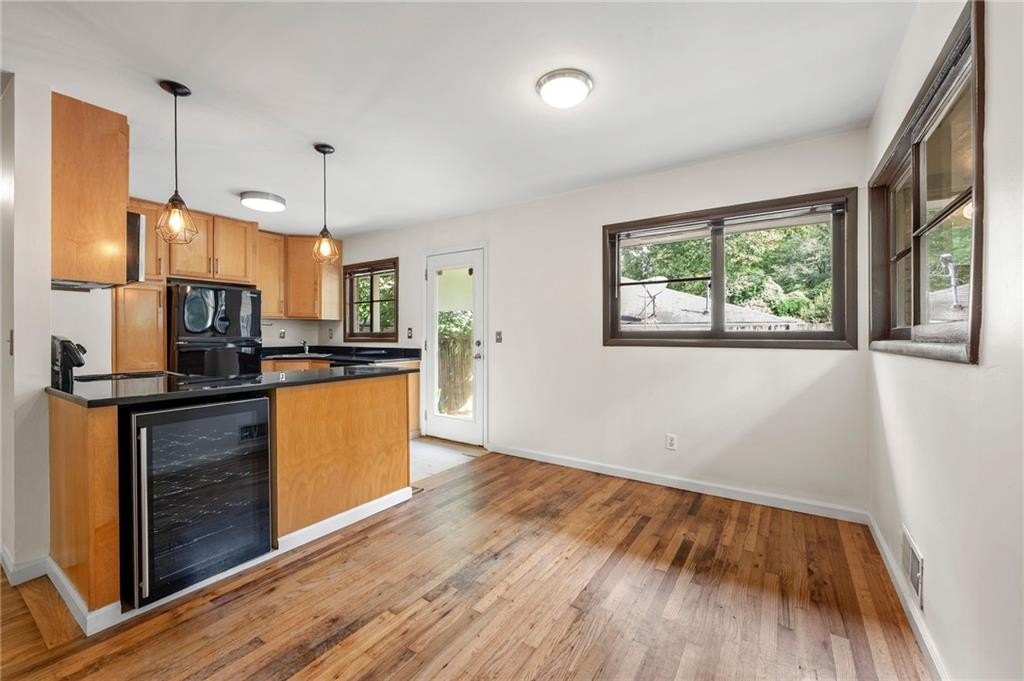 Tucked away behind Morningside and Virginia Highland, this charming 3 bedroom, 1 bath, 4-sided brick bungalow is nestled in the well-established Atlanta neighborhood of Woodland Hills. With a private yard and lush, low maintenance landscaping, this home offers comfort and peace while being centrally located to everything in Atlanta. Step inside to the open concept living space filled with natural light from large windows and enjoy the warmth of hardwood floors throughout. The updated kitchen features wood cabinetry, sleek dark granite countertops, and a built-in wine fridge—perfect for cooking and entertaining. The bedrooms are located down the hall and feature well sized closets and large windows. The bathroom has an updated vanity, tiled bathroom-tub combo, and tile flooring. Outside, the flat backyard is a private oasis with lovely gardens, shade trees, and a pathway to a stone patio with a brick fireplace. The basement spans the footprint of the house and holds all of the major systems as well as the laundry room and is a wonderful, dehumidified space for all of your dry storage. The roof, HVAC and water heater have been updated within the past 6-8 years. This property offers incredible versatility—whether you’re searching for a primary home, a rental investment (3-bedroom homes in the area rent for around $2,000+/month), or a renovation project with serious upside potential-renovated homes nearby are selling from the mid-$500's to over $1M+. With friendly neighbors, no HOA, and unbeatable proximity to highways, bus stops, shopping, and everything Atlanta has to offer, this home is the lowest price in the neighborhood and your opportunity to own a piece of Atlanta at an exceptional value. Don’t wait—come make it yours today!