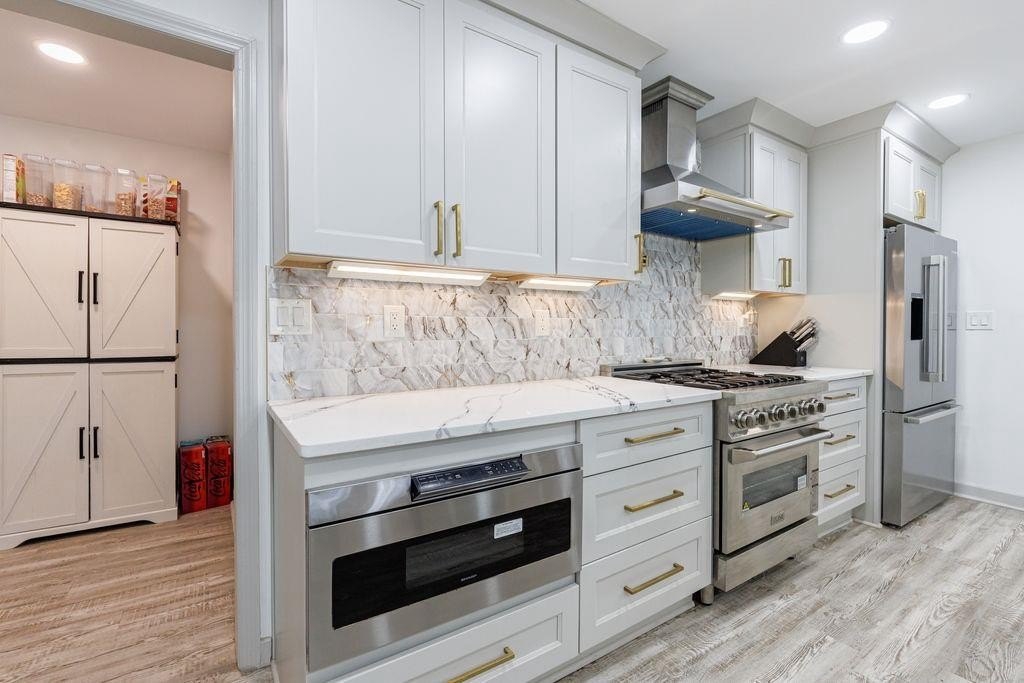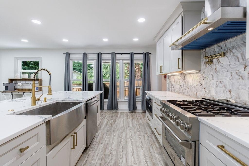 Amazing renovation, close-in location and in one of Dunwoody’s top rated school districts!!! This home is in a sought-after Dunwoody neighborhood, just .25 mile from Ashford Dunwoody Road and two miles from Perimeter Mall, I-285, GA-400, dozens of shops, restaurants, and Publix. A very walkable quiet neighborhood with sidewalks all along Valley View Road from Ashford Dunwoody Road. Welcome home to a beautifully transformed renovated Dunwoody home – no expense was spared in modernizing every aspect. It is as stunning as it is functional with a modern design and a thoughtfully imagined floor plan with 5 Bedrooms and 3 Full Baths. This completely open concept layout features an amazing kitchen with an expansive quartz island, incredible workmanship on the tile backsplash and gold fixtures and handles, new vent hood and all stainless-steel appliances including four burner gas oven range, refrigerator, and in cabinet microwave. The spacious family room features a stunning geometric fireplace built into the wall and space for a large dining table. Enjoy outdoor living on the large side deck with ceiling fan overlooking a private fenced backyard – perfect for entertaining. Master is on the main with a Master bath that has a floor to wall dramatic tile backsplash, rainfall shower head and two vanities. Two additional bedrooms on the main with a full bath, elegant tile/shower with wall massage shower heads. The daylight lower level has exterior access to the private fenced backyard with two bedrooms facing the backyard and a full bathroom, a great in-law suite, perfect play area for children, or a great place for an in-home gym! Screens are on all windows on both floors. A great home for entertaining as well as offering separate spaces for different activities. Renovated in 2022 and purchased by current sellers in early 2023, this home features over $40K in upgrades by the current sellers including a whole house Generac generator, new privacy fence, upgraded electrical with surge protection and grounding, improved laundry ventilation, and enhanced backyard drainage. Don’t miss this opportunity to call this wonderful property your new home!