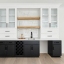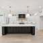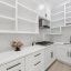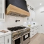For the culinary enthusiast, the kitchen is a showpiece of design and function. Anchored by an oversized waterfall quartz island with deep sink, it boasts custom white cabinetry with glass-front displays, elegant stone counters, and cabinet lighting that adds both warmth and sophistication. A professional-grade JennAir six-burner gas range with pot filler is complemented by a suite of stainless appliances, while a secondary walk-in kitchen with its own Frigidaire five-burner gas cooktop, sink, and extensive cabinetry ensures seamless preparation and effortless entertaining. A spacious walk-in pantry completes the chef’s domain.