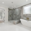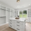 The main-level primary suite is a private sanctuary, offering both comfort and indulgence. A fireplace anchors the room, while oversized windows frame views of the grounds. The spa-inspired ensuite bath is designed to rejuvenate, featuring a freestanding soaking tub, an oversized frameless dual-head shower, dual vanities with makeup space, and touch-screen mirrors with adjustable lighting. A custom walk-in closet with built-in shelving and a center island transforms daily routines into a boutique dressing experience.