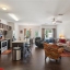 Step inside to an inviting open-concept living area that flows seamlessly into the dining space and modern kitchen. The kitchen features a large island with breakfast bar, stainless steel appliances, and plenty of counter space – ideal for both everyday living and entertaining.