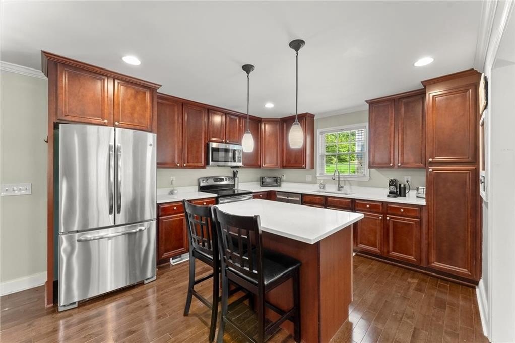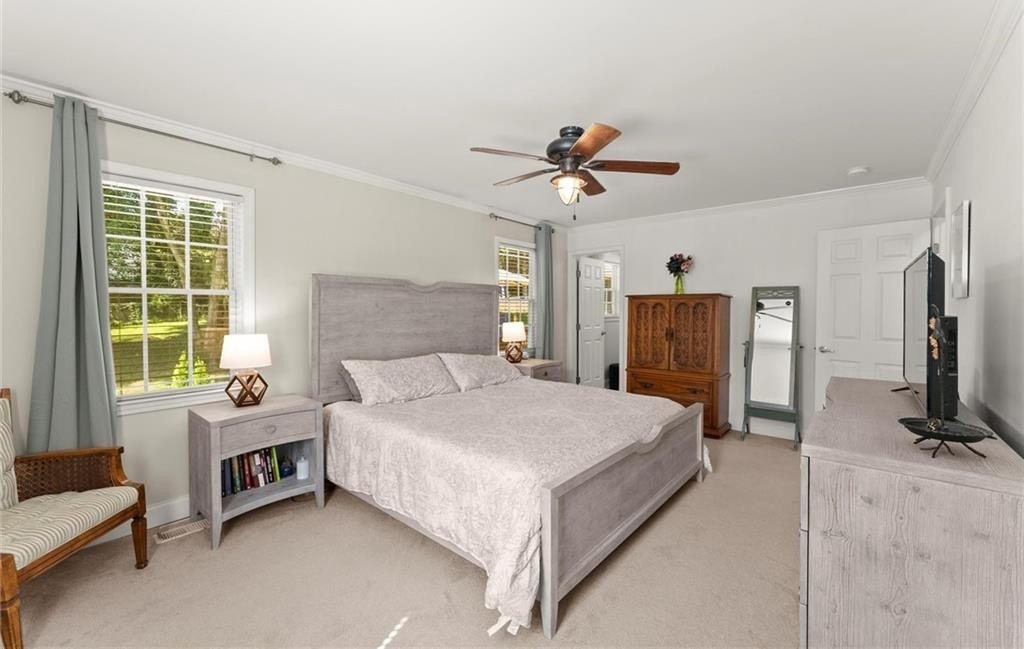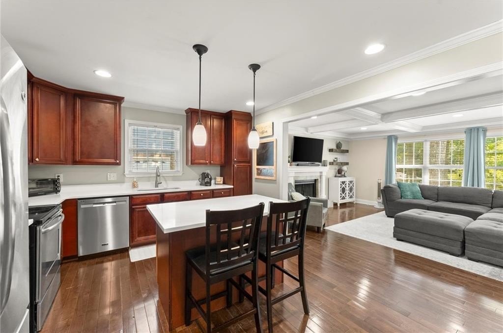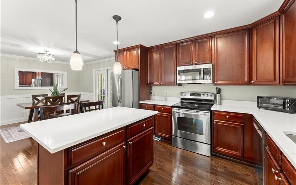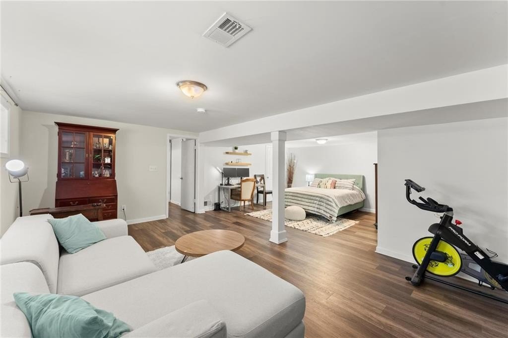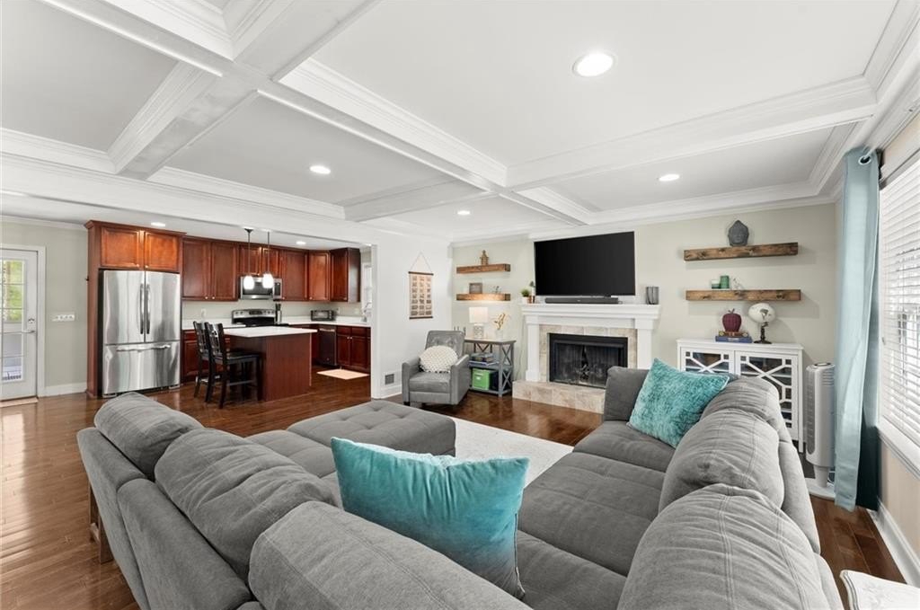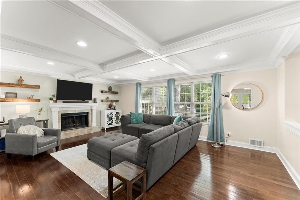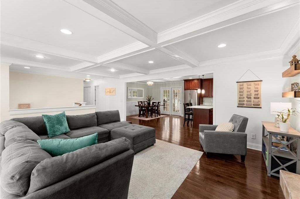 Nestled in a quiet neighborhood with very friendly neighbors, this beautifully updated & MOVE-IN READY home is the one you've been waiting for! The beautiful updates and incredible attention to detail shine through in every single room. From the moment you step inside onto the gorgeous HARDWOOD floors, you'll appreciate the quality work and planning poured into this home. The heart of this home is the stunning, LIGHT-FILLED open-concept living space. The family room makes a statement with its dramatic COFFERED ceilings and flows effortlessly into a chef’s dream kitchen. RENOVATED just two years ago, this kitchen is an entertainer’s paradise, featuring a massive, custom-extended ISLAND topped with gorgeous QUARTZ countertops that invites everyone to gather around. Unwind in your oversized primary suite, flooded with natural light. The huge ensuite bathroom is your private spa, boasting beautiful travertine tile, a DOUBLE VANITY, a separate shower w/ seating, and a private water closet. The guest bedrooms are equally bright and spacious, with newer double WINDOWS and carpeting. The upgrades don't stop there! Head downstairs to discover a fully FINISHED BASEMENT with LVP flooring. This flex space is perfect as a guest suite, media room, or home gym, complete with a full bathroom and bedroom, plus a large laundry room. Step outside and discover your private BACKYARD OASIS! Over 20 trees have been cleared to create a sunny, level, and FULLY FENCED yard. Enjoy morning coffee or a peaceful afternoon in the delightful sunroom—the seller’s favorite spot to hang out. Here you can enjoy nature and the sound of birds chirping; as they say, “It’s like being in a Disney movie!” The sunroom also has screens for open-air enjoyment and leads out to an expanded back deck, perfect for hosting barbecues. This home is packed with features you'll love, including SMOOTH CEILINGS throughout, a classic office with wood paneling, TONS OF STORAGE with two hall closets, an extra linen closet, an additional climate-controlled storage area, and an oversized two-car garage with a WORKSHOP area. This property offers incredible value and a truly turn-key experience. Optional Pool Memberships available in the neighborhood. Don't let this gem get away – schedule your showing today!