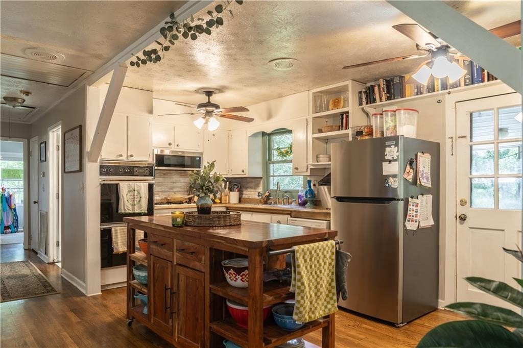 Set on a private half-acre lot, this 3-bedroom, 1.5-bath brick ranch offers comfort, character, and convenience. Inside, refinished hardwood floors, fresh paint, updated trim, and built-in shelves add both style and functionality. The open kitchen features an island and new refrigerator, while the bathrooms include a modern vanity and new tile flooring. The screened-in back deck overlooks a spacious backyard, with plenty of room to relax, play, or entertain. A detached garage provides excellent workshop or storage space, and the patio is ready for a fire pit. Located on a quiet, no-through street yet within walking distance to shopping, dining, and groceries, the home combines privacy with everyday convenience. Homes with this much potential at this price point are rare in the area, making it a strong option for a first home, rental, or investment.