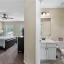 A grand FOYER with SOARING CEILINGS and GORGEOUS HARDWOOD FLOORS makes a dramatic first impression, highlighted by a wrought iron BALUSTER STAIRWELL and CATWALK that overlooks the entry. From here, the home opens into a very OPEN FLOOR PLAN designed for both everyday living and entertaining. On the main level, you’ll also find a private OFFICE WITH VAULTED CEILINGS, perfect for working from home, as well as a GENEROUSLY SIZED IN-LAW SUITE, much larger than typical, offering a private retreat for extended family or guests.