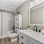 The TERRACE LEVEL is equally impressive, finished in 2021 with an expansive living area highlighted by an ELECTRIC FIREPLACE framed by a custom WOOD-PLANK WALL. A full KITCHEN with LEATHERED GRANITE COUNTERTOPS, soft-close cabinetry, and ALL NEW APPLIANCES — including ELECTRIC RANGE, MICROWAVE, DISHWASHER, and REFRIGERATOR — makes this space ideal for entertaining or extended family living. A private BEDROOM, full BATH with QUARTZ VANITY and SUBWAY-TILED SHOWER, and a FLEX ROOM with CUSTOM BARN DOORS complete this level while still leaving ample storage.
