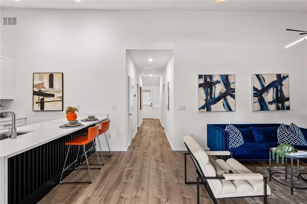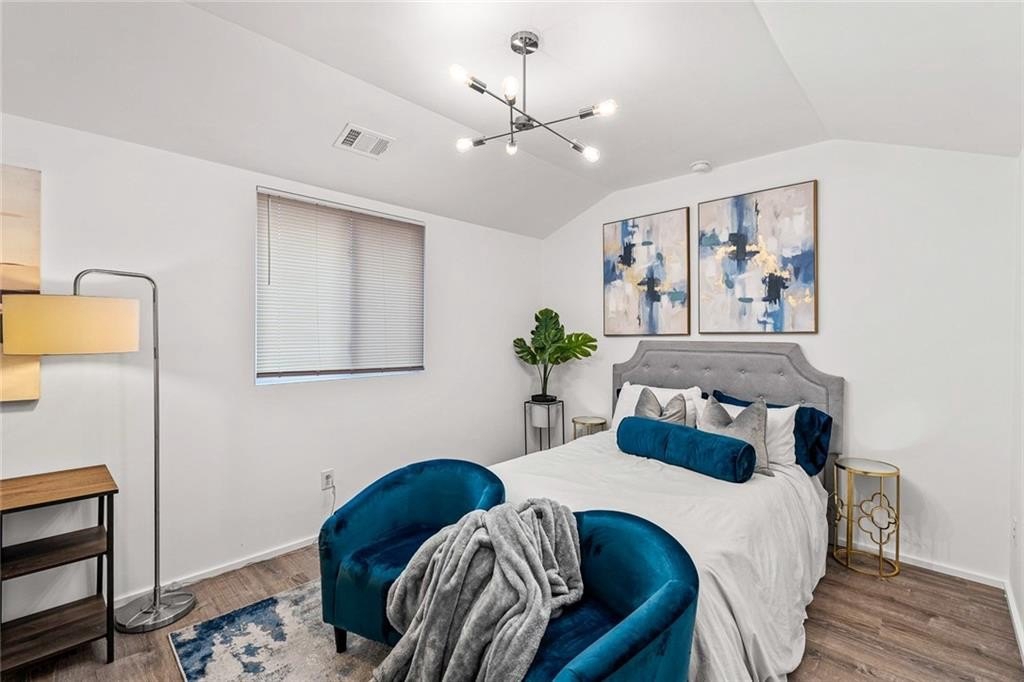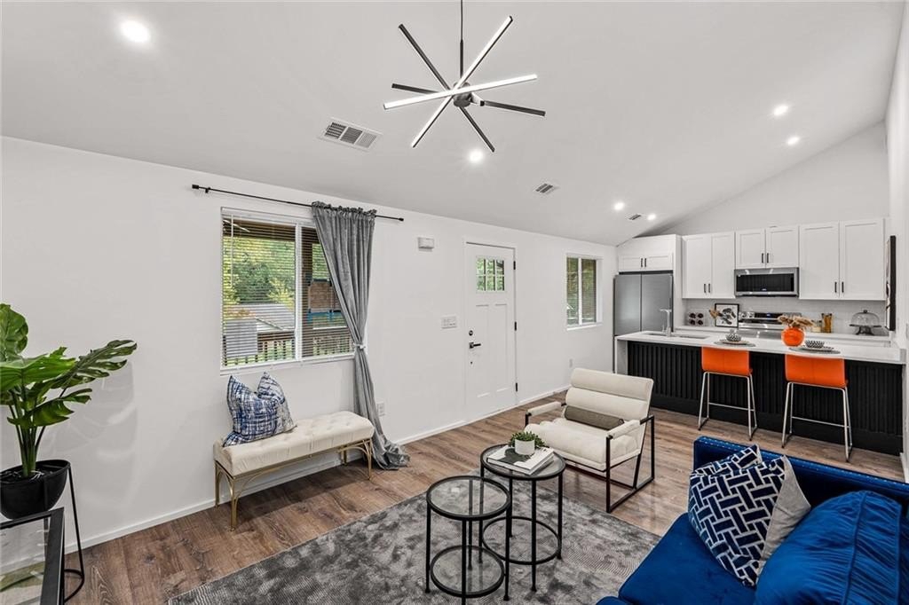 Welcome to your dream home on a quiet, up-and-coming street! Situated on a large corner lot, this beautifully updated bungalow offers an expansive backyard perfect for entertaining, gardening, or relaxing in your own private oasis. A huge front deck sets the tone for stylish outdoor living right from the start. Step inside to discover an open, airy interior with soaring vaulted ceilings and luxury vinyl flooring throughout. The heart of the home features a sleek kitchen equipped with state-of-the-art Samsung appliances, soft-close cabinets, a transitional water faucet, and stunning modern light fixtures—complete with dimming capability to set the perfect mood.The spacious primary suite is a true retreat, boasting double sinks, a custom closet, and elegant finishes. The additional 2 bedrooms are spacious and the hallway bathroom is modern and sleek. A tankless water heater ensures endless comfort and efficiency and a new roof provides comfort and peace of mind. Located just minutes from the Beltline and a variety of shops, this home is perfectly positioned for both convenience and growth. Surrounded by ongoing neighborhood rehabs, it’s an ideal investment in style and location. There are unbeatable upgrades for this price point!