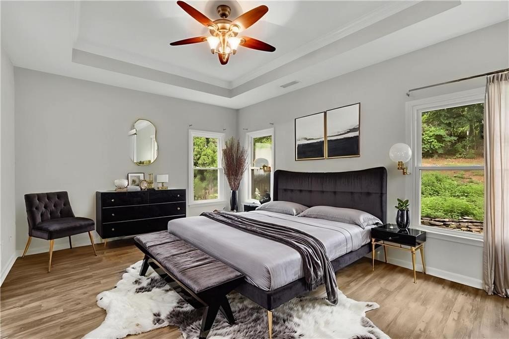 We have a PRIMARY ON MAIN! We have all NEW WINDOWS and DOORS, NEW APPLIANCES, newer HVAC systems, all new LVP flooring, and a newly beautifully renovated upstairs bath! The primary on main is a good-sized room with HIS/HERS separate closets. The living area has vaulted ceilings, bookcases, and is open concept to the large kitchen. This house has lots of natural light and a fabulous fenced backyard that has been beautifully landscaped (low maintenance by the way, with a new awesome shed that stays!) This neighborhood has a great variety of homeowners and social opportunities, the pool is bustling, kids at the playground, and if you're a tennis person, look no further! Our courts are very well maintained with multiple teams of all levels who play out of Avocet. We also LOVE the walkability, right outside the neighborhood, you have over 85+ miles of sidewalks, you can walk to Starbucks, restaurants, or if you're the athletic type, you can walk to the town center for MORE restaurants, shopping, concerts. This home is priced to sell and WON'T LAST!