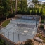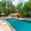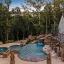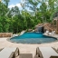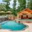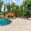 The backyard is a true PARADISE with diving ledges, resort-style slides, waterfalls, grottoes, tanning ledges, and a massive hot tub, along with pickleball and basketball courts, a putting green, and an in-ground trampoline. Outdoor living continues with a full kitchen, outdoor bathroom, sauna, private outdoor shower and spectacular outdoor fireplace tucked in the trees for majestic evenings! Covered and screened deck with fireplace is the perfect spot for morning coffee! Custom lighting enhances both the home and backyard, creating a stunning evening ambiance, while a full irrigation system keeps the grounds lush and a full house generator provides peace of mind. A rocking chair front porch adds classic Southern charm, while the attached two-car garage and detached two-car garage provide space for four vehicles in total. Above the detached garage, a private office / bonus space is ideal for a home office, studio, or man cave. The property also features a private hiking trail that leads directly to Canton Creek and waterfall.