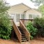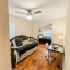 Inside, you'll find gleaming hardwood floors, charming architectural details, and an abundance of natural light throughout. The renovated kitchen features granite countertops, new stainless-steel appliances, updated lighting, and a dedicated laundry area with cabinets, washer, and dryer. The spacious great room flows seamlessly into the kitchen and dining area, where French doors lead to a serene, private deck—ideal for morning coffee or evening relaxation. A convenient half bath is located just off the dining area, making this layout perfect for both everyday living and entertaining.