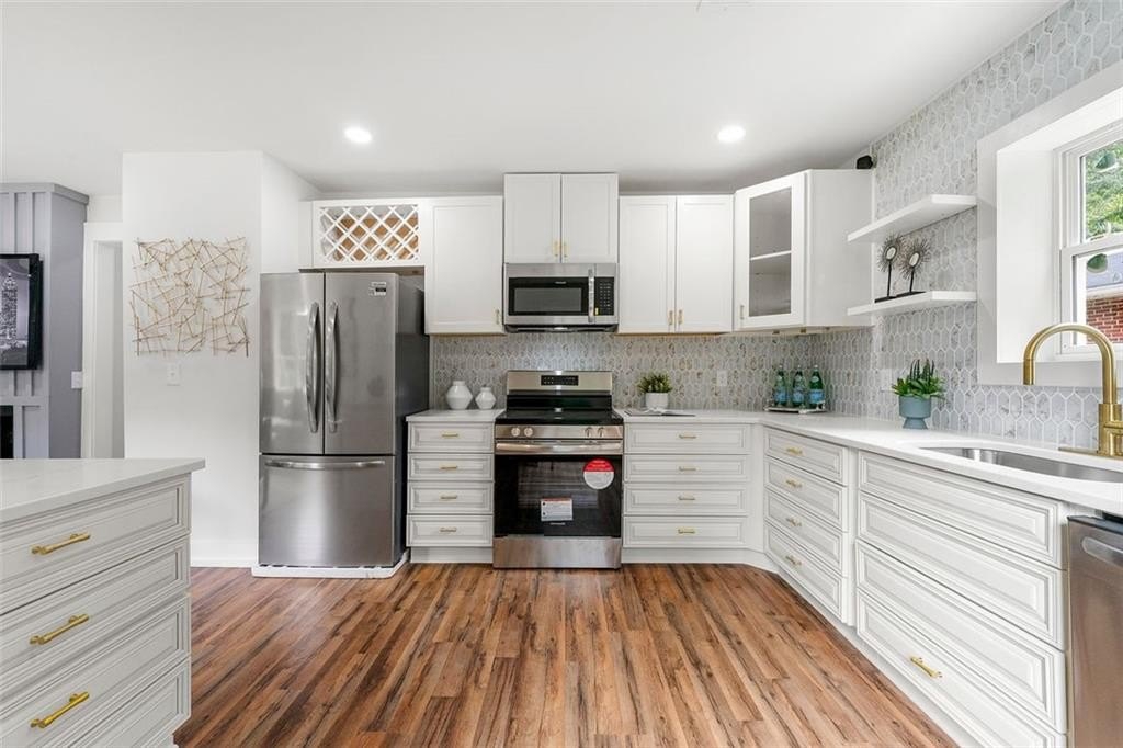 Welcome home to your beautifully designed newly renovated ranch style home featuring 4 spacious bedrooms and 3 and a half bathrooms on a full basement. No part of this home was left untouched, with all new electrical, plumbing, and HVAC. This home features a gourmet kitchen with quartz countertops, custom peninsula, and wine racks. All bedrooms feature walk-in closets and there are two thoughtfully designed double master suites. This home exudes elegance with its recessed lighting throughout, accent wall with electric fireplace, and beautiful master shower with double vanities. The seller is offering up to $7500 in closing cost assistance - an incredible value for your dream home