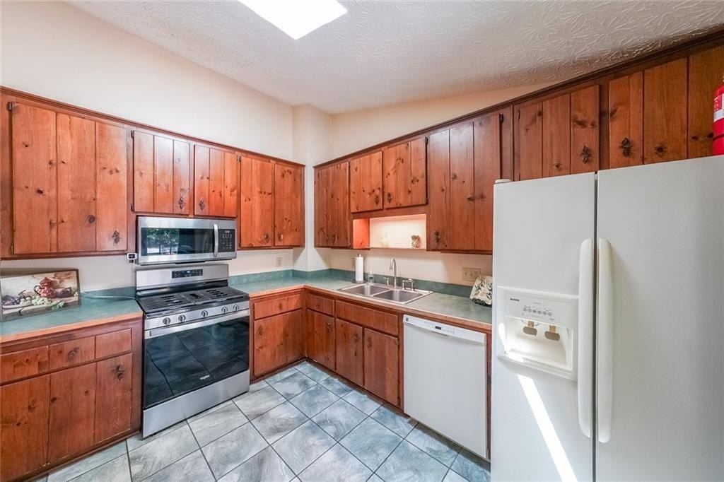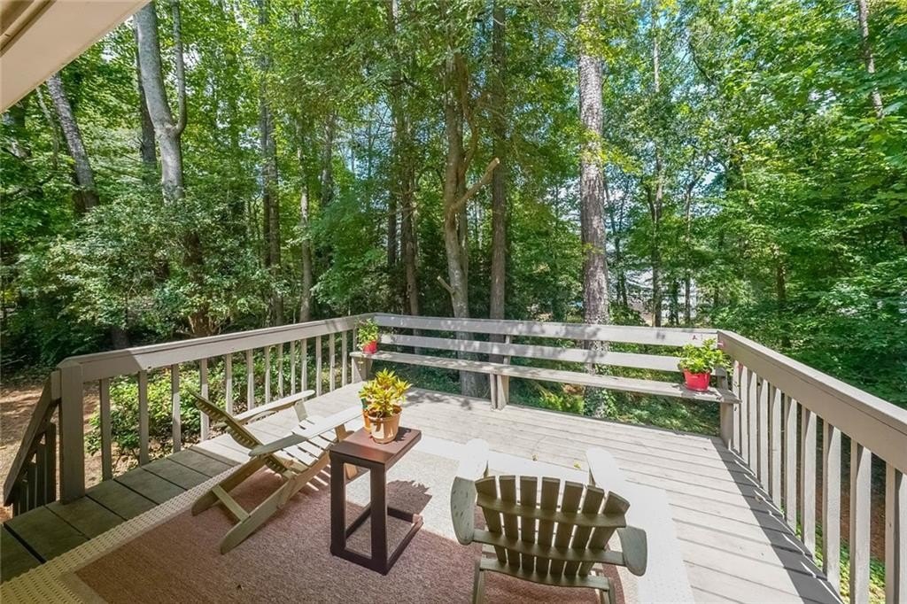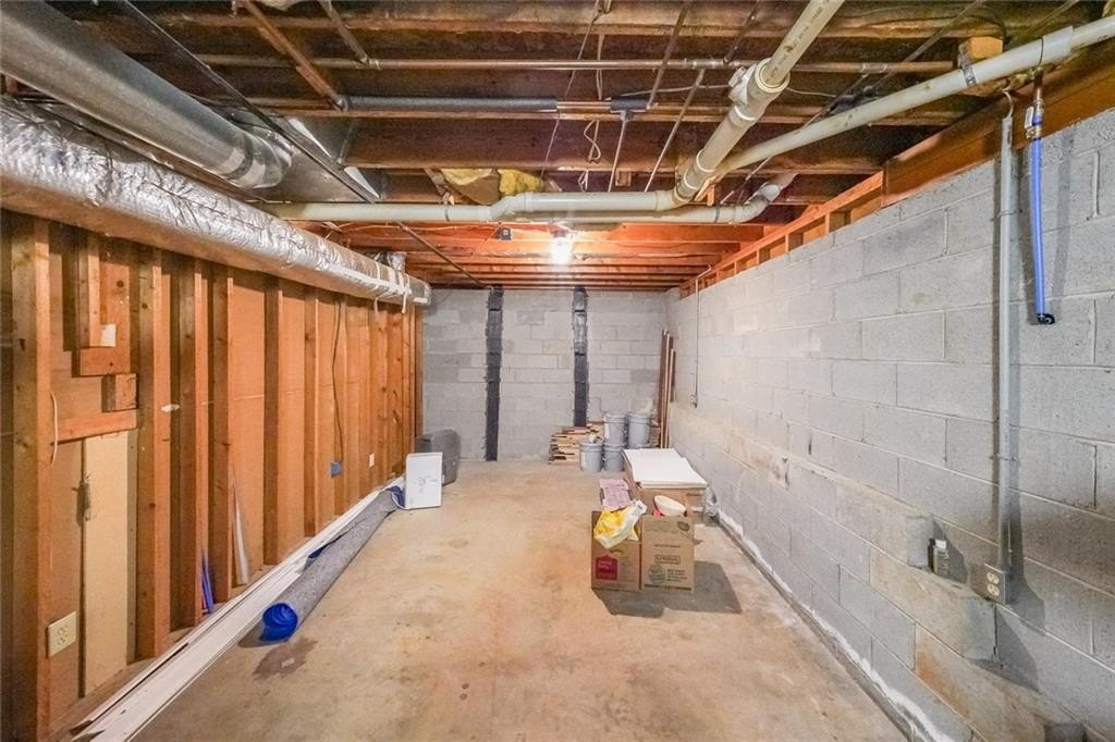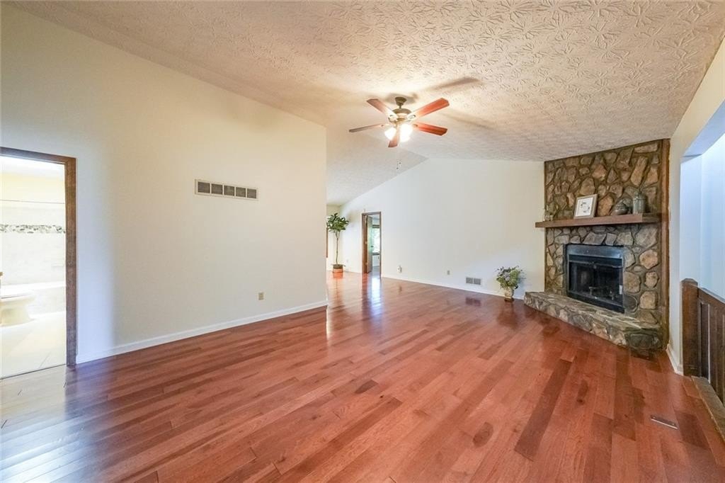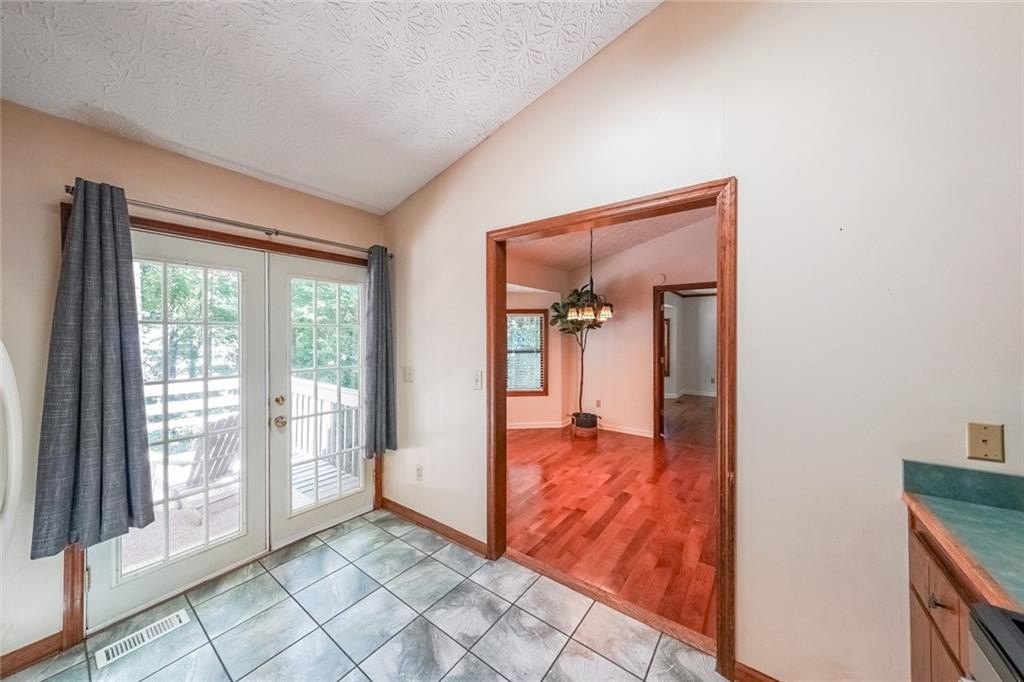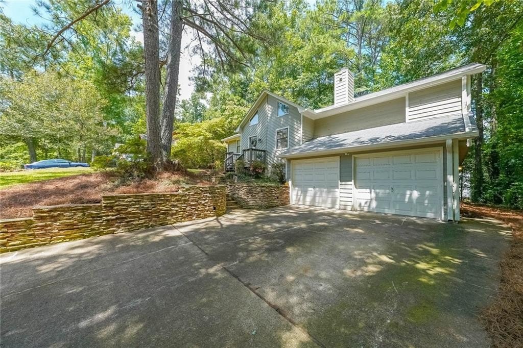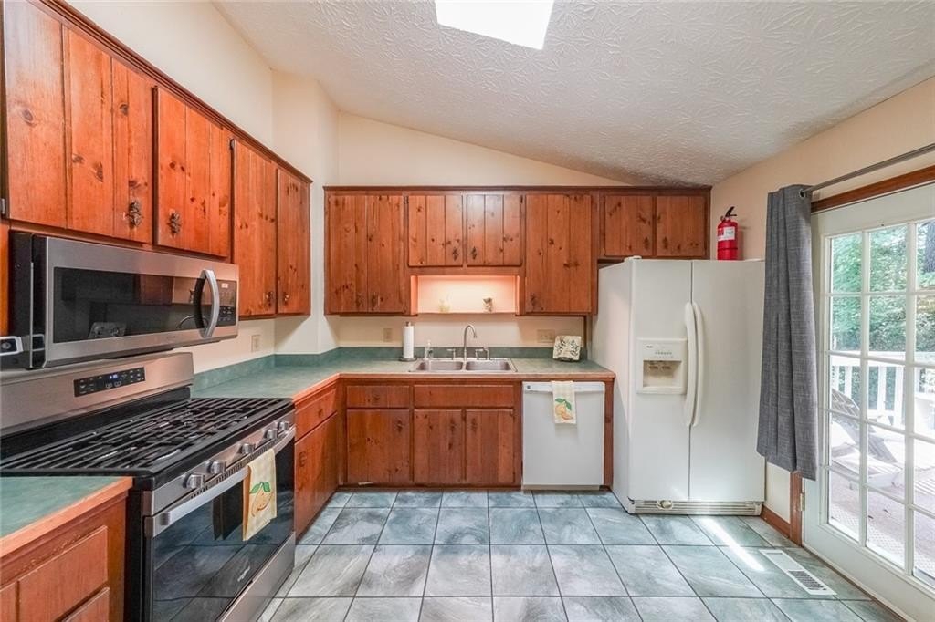 Welcome Home! This beautiful, freshly painted exterior home offers elegant stonework walls, stairs, and walkway. As you enter, the home opens up with cathedral ceilings and tasteful hardwood flooring throughout most of the main level. Stone fireplace adorns this X-Large room. The kitchen has newer stove/oven, vaulted ceiling with skylight and tile flooring. French doors open to wooded, private lot & deck w/built in seating. Both baths are updated w/tile floors. The guest bath has a skylight too! Several rooms have newer interior paint. The basement is partially finished. All you need is some flooring and a few ceiling tiles. Other great features are newer roof (2023), wider gutters (2022), Aquaguard regrade & straps on laundry room wall (lifetime warranty - transferable), laundry room drywall (2024), new carpet on stairs and entry (2024), new disposal (2024), chimney siding replacement & new exterior paint (2024). Updates to electrical panal (2025).