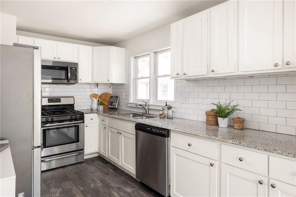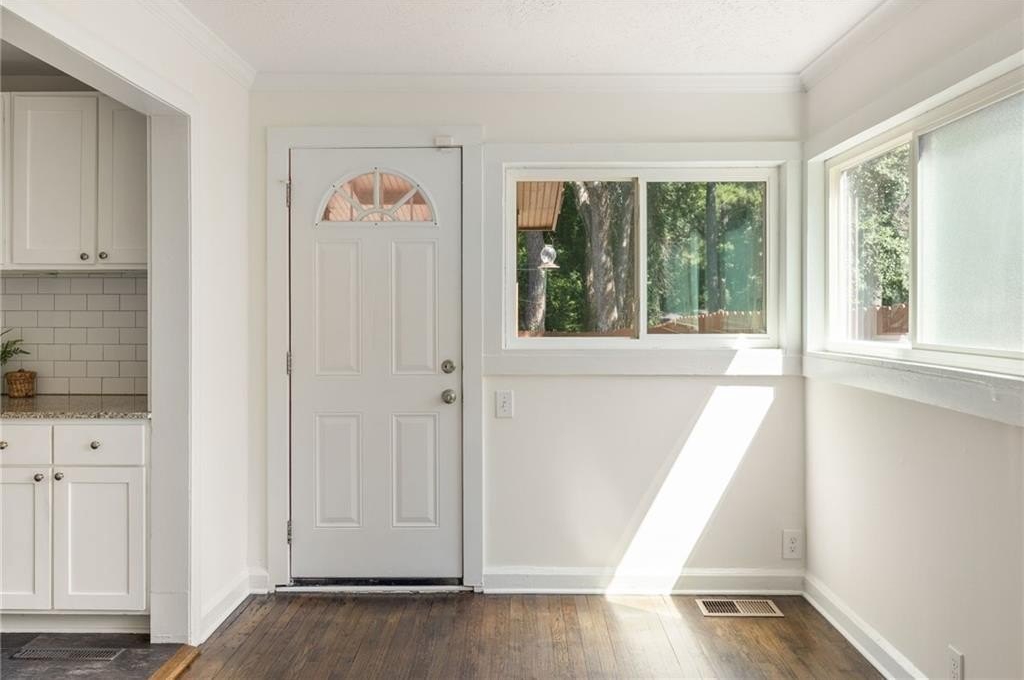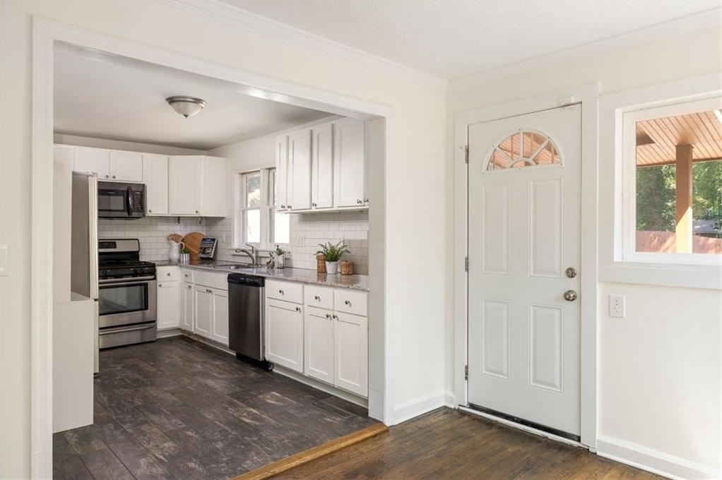Renovated in 2017 and continuously improved since, this home is truly move-in ready and an incredible value for White Oak Hills. The main level features hardwood floors, crown molding, a built-in bookcase, a dedicated dining room, sunroom/bonus space, and a spacious kitchen with white cabinetry, stainless steel appliances, and granite countertops. Two bedrooms and a full bath complete the main level, while the upstairs primary suite offers a private retreat with a double vanity and walk-in shower. The entire interior has been freshly painted, and the upstairs features brand-new carpet.