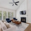 As you enter the foyer, you’ll be greeted by light-filled, neutral interiors and handsome hardwood flooring that flows throughout the main level. The kitchen is the heart of the home, featuring leathered granite countertops, butcher block island, gleaming tile backsplash, designer-painted cabinetry, and stainless-steel appliances including a gas range. The kitchen opens seamlessly to the fireside family room, creating the ideal spot for everyday living and entertaining. A formal dining room, home office/flex room, and stylish powder room complete the main level.