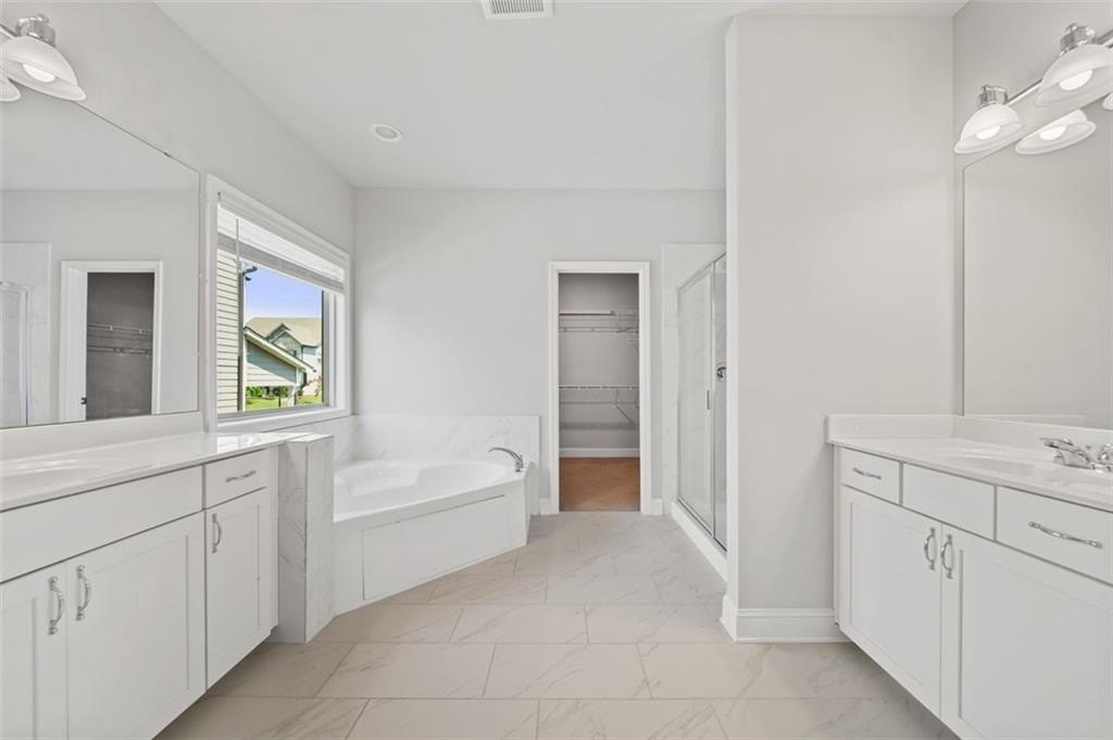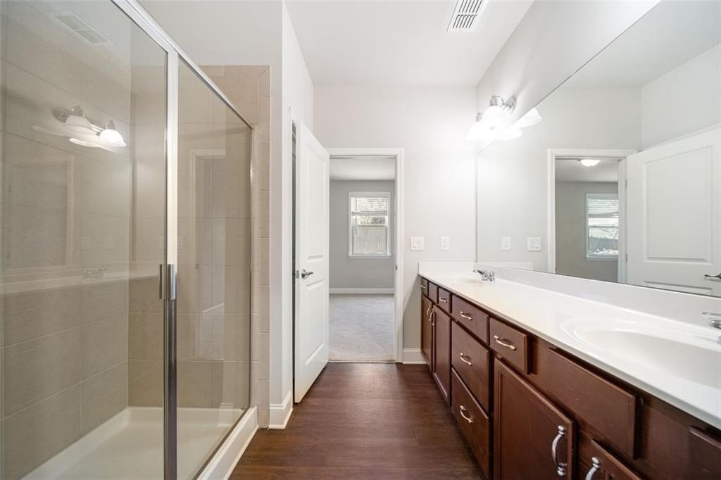 Introducing Bethesda Heights located in Lawrenceville, this rare layout features 2 master suites with 1 on the main level and the other on the upper level. It is open concept and high ceilings throughout with lots of natural light. Each spacious primary suite features private en-suite bathroom, generous walk-in closets. Upstairs has a loft area with view to downstairs family room. The open-concept kitchen and living area create the perfect gathering space for entertainment. Step outside to a patio with private fenced in backyard ideal for relaxation or gardening. Main floor also has flex/office space as well as mudroom upon entering from garage. Convenient location near shopping, dining, and commuter routes.