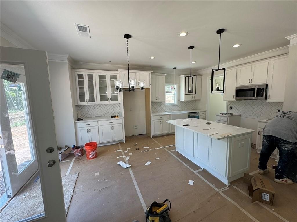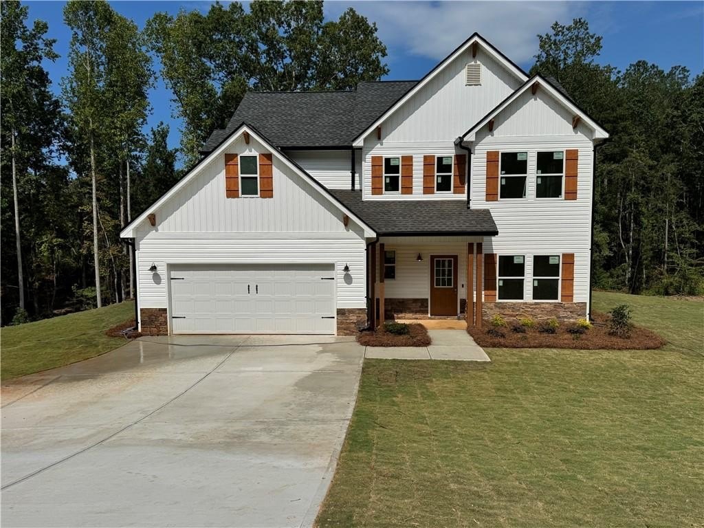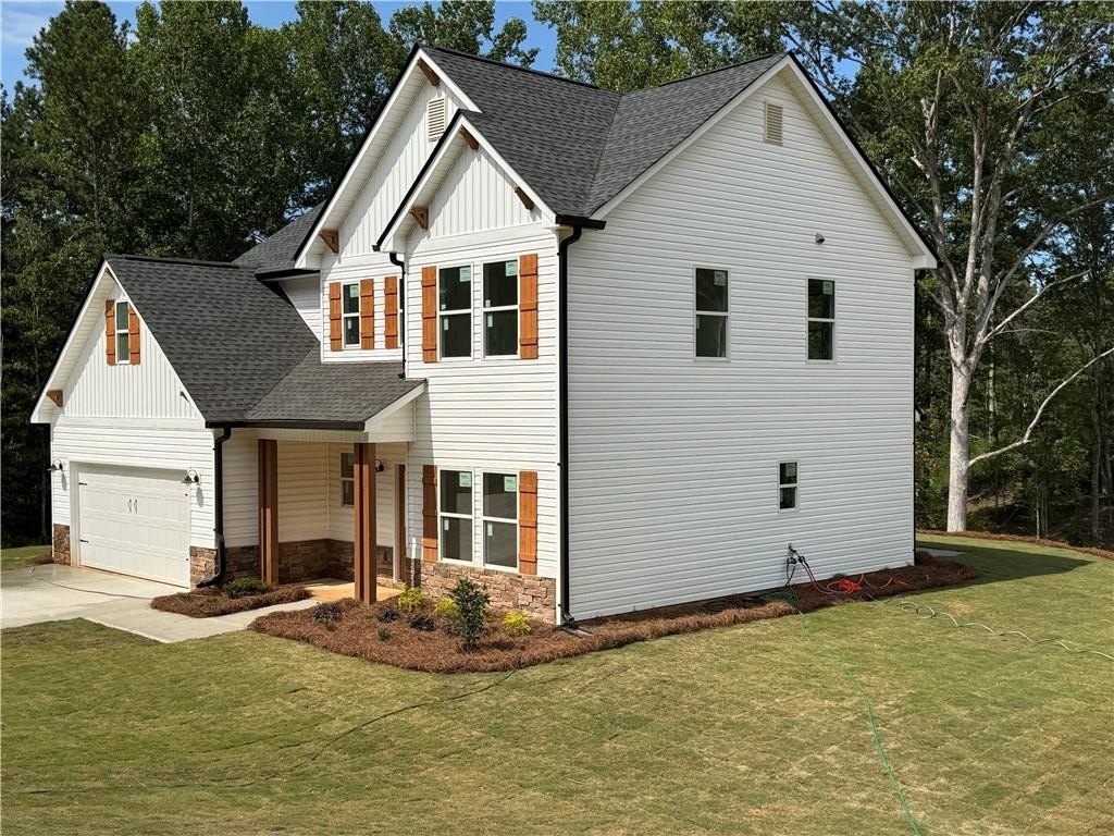 Charming 2-Story Farmhouse on 5 Scenic Acres.Welcome to this stunning 3-bedroom, 2.5-bath farmhouse-style home that blends rustic charm with modern comfort. Nestled on 5 peaceful acres, this beautifully designed residence also features a private dedicated office space, loft area, and an open-concept layout perfect for both everyday living and entertaining. Step inside through a welcoming foyer that leads past a formal dining room, a convenient half bath, and a coat closet, opening into a true chef’s kitchen. Enjoy white cabinetry, a large center island, a farmhouse sink, built-in display cabinet and buffet, modern backsplash, and stainless steel appliances—including range, microwave, and dishwasher. The spacious eat-in kitchen overlooks the family room highlighted by an electric fireplace with a marble surround and a tastefully shipped lap accented wall. Luxury vinyl plank (LVP) flooring runs throughout the main level, complemented by beautiful lighting fixtures and access to a back patio with views of your expansive property. Upstairs, the primary suite impresses with a tray ceiling, eye-catching accent wall, and a generous walk-in closet. The en-suite bath offers a double vanity, large soaking tub, tiled accent walk-in shower with bench seating, and ceramic tile floors. Two additional spacious bedrooms share a full bath and offer ample closet space. A versatile loft area and a dedicated laundry room complete the upstairs living space. Additional features include a 2-car garage with automatic opener and a custom-built hall tree for added convenience and style. This is country living at its finest—don’t miss your chance to make this dream home your reality! TRACT 1 on Survey. $3,000 contribution in closing concessions with preferred lender. Home is still under construction so please use caution when visiting.