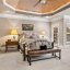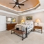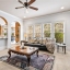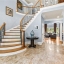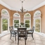 Through stately double wooden doors, you are greeted by an expansive marble foyer that immediately sets the tone for the home’s romantic beauty. To the right, graceful columns frame the dining room, while to the left, French doors open to a richly appointed office with walls of windows. Moving forward, the two-story great room impresses with floor-to-ceiling bookshelves showcasing intricate millwork and breathtaking views of Allmond Lake through its tall windows.