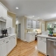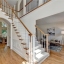 The kitchen is light, bright, and functional with white cabinetry, stainless steel appliances, and extra storage space—including glass display cabinets, built-in wine storage. Hardwood floors span both the main and upper levels, adding timeless charm throughout the home. The great room flows seamlessly to an oversized deck, ideal for entertaining or relaxing in total privacy.