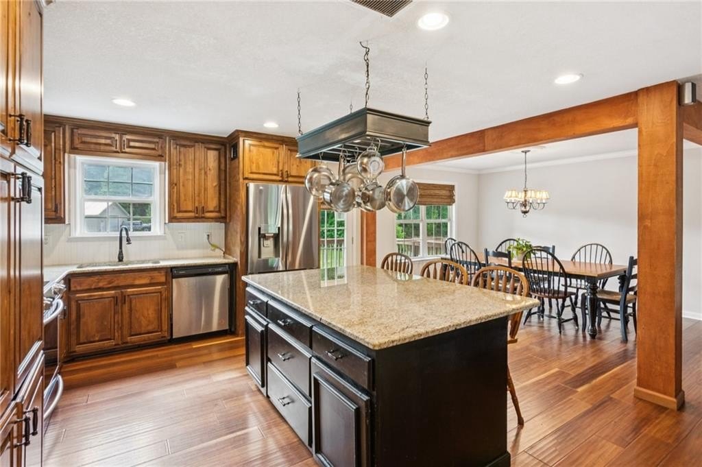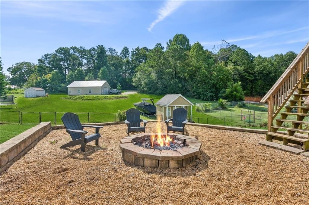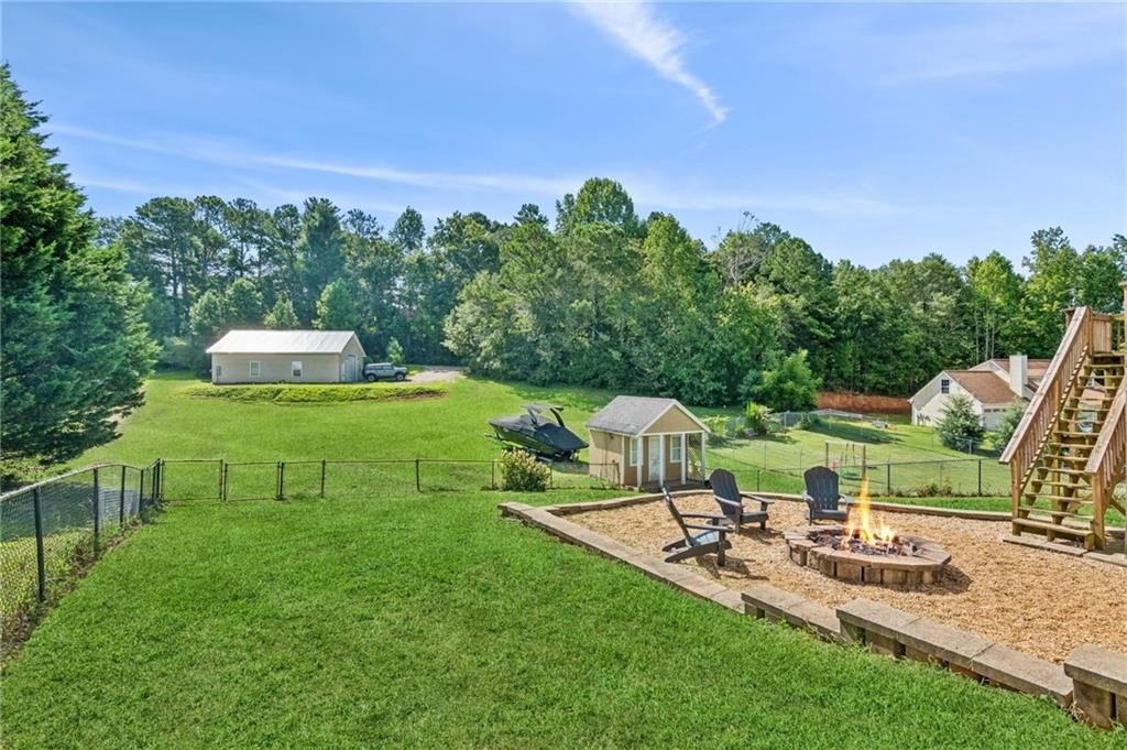 Outside, enjoy a fenced backyard complete with a cozy fire pit, plus additional yard space beyond the fence for endless possibilities. One of the standout features is the impressive 1,200 sq. ft. climate-controlled garage building with its own private access-perfect for a workshop, hobby space, home business, equipment storage or just extra storage. And best of all- NO HOA! With so much room to spread out and enjoy this property combines comfort, functionality, and freedom all in one. Easy access to 985 and GA400. This is a central location to both and only 15 minutes to the beautiful downtown Gainesville Square that boasts some of the best restaurants and coffee shops. Access to Lake Lanier is just 2.3 miles away to Sardis Park Boat Ramp and Park.