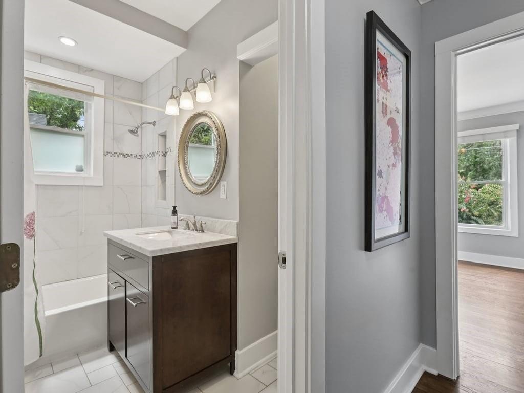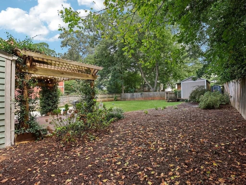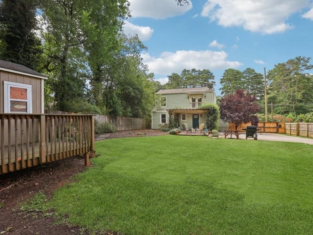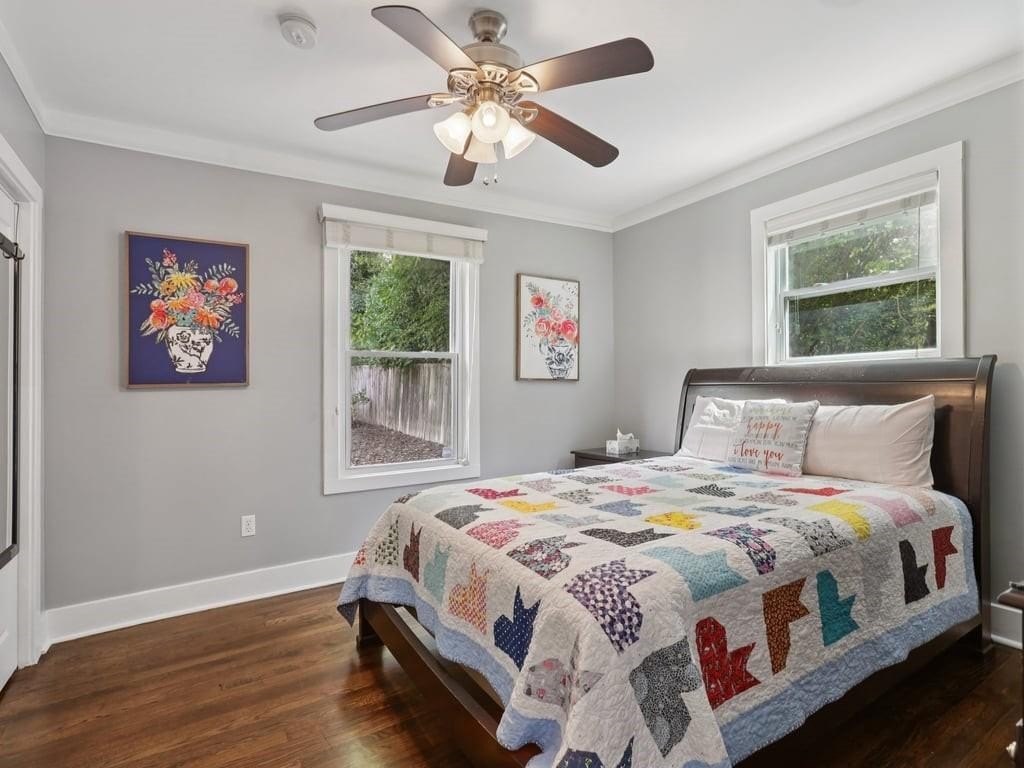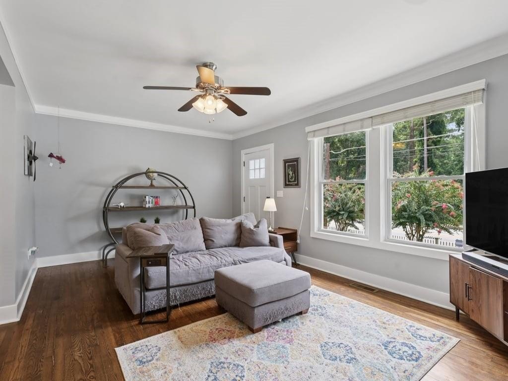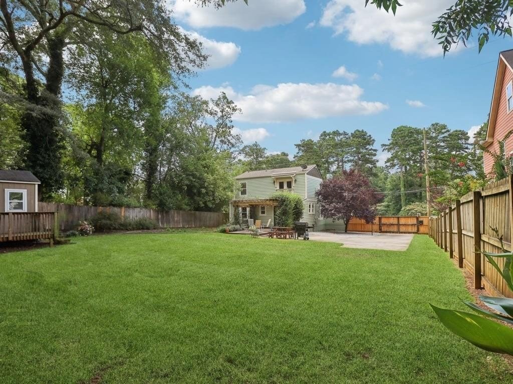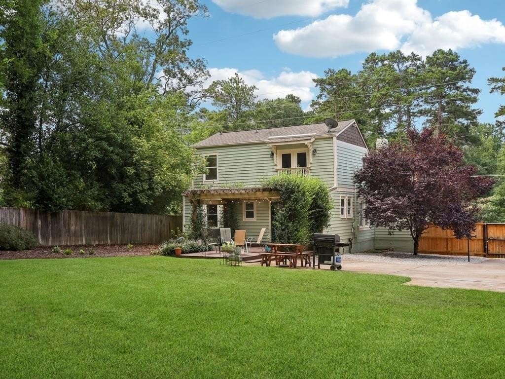 Arrive through a handsome, solar-powered automated gate to a surprisingly private, oversized yard framed by a newly painted white picket fence and an enclosed custom perimeter, a rare intown sanctuary where neighbors are nearby yet thoughtfully out of view. The freshly painted exterior sets an elegant tone enhanced by new gutters and downspouts with debris guards, while professionally designed hosta gardens and a Zenith Zoysia sodded lawn deliver a lush, magazine-ready welcome. Step inside to a sunlit, open floor plan where generous living and dining areas flow with ease to a bright kitchen appointed with stainless steel appliances and granite counters. Every surface feels refreshed and intentional, and the entire home reflects a no-expense-spared mindset.