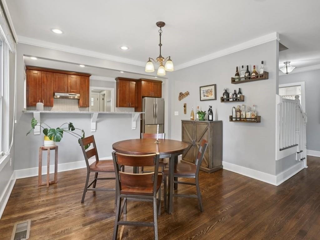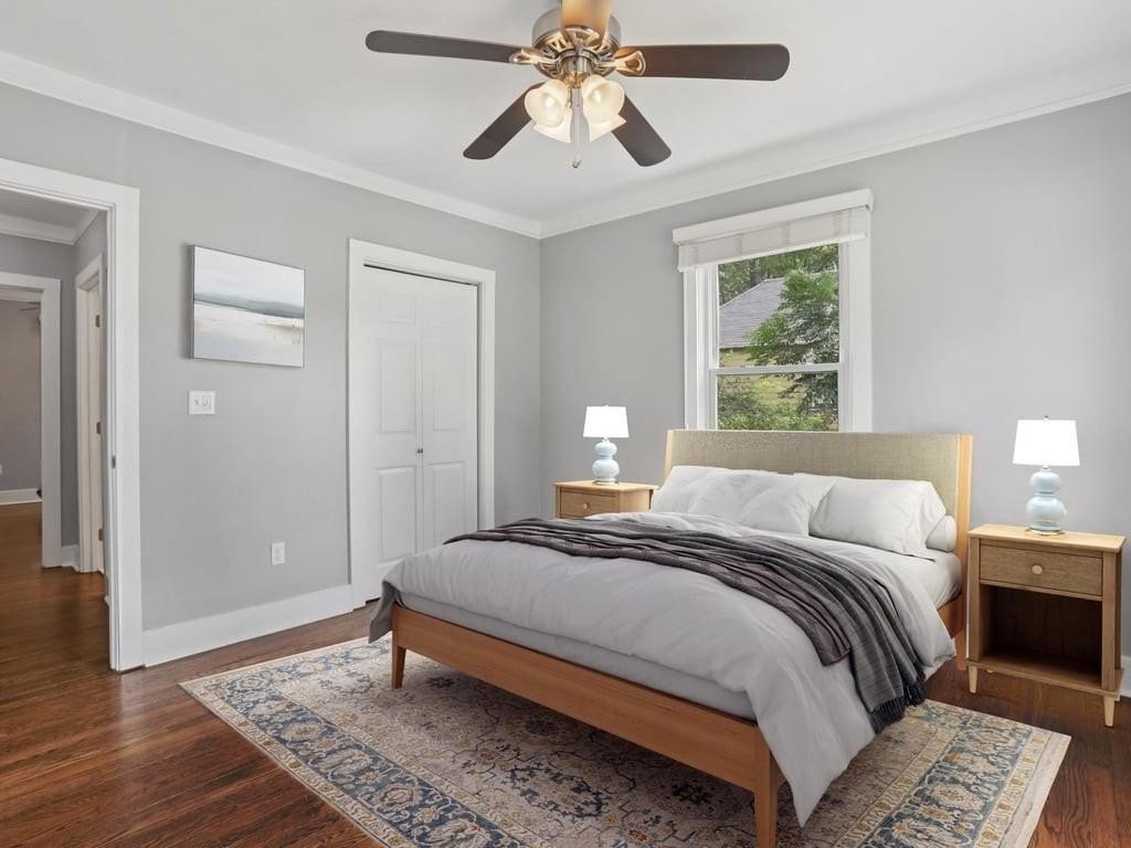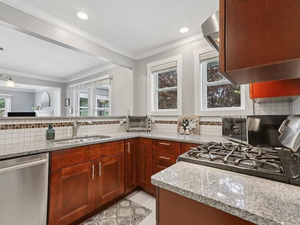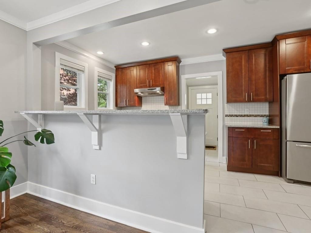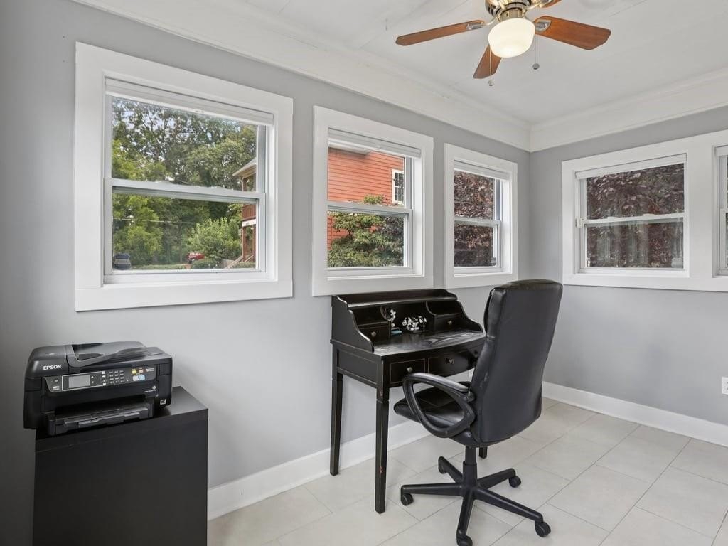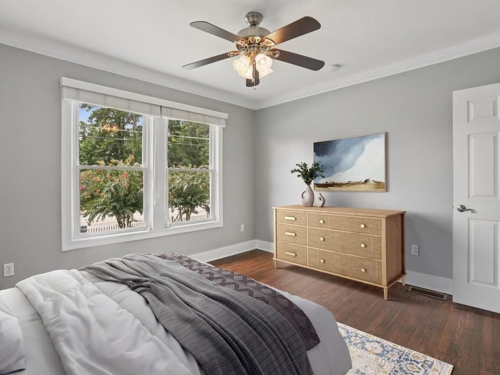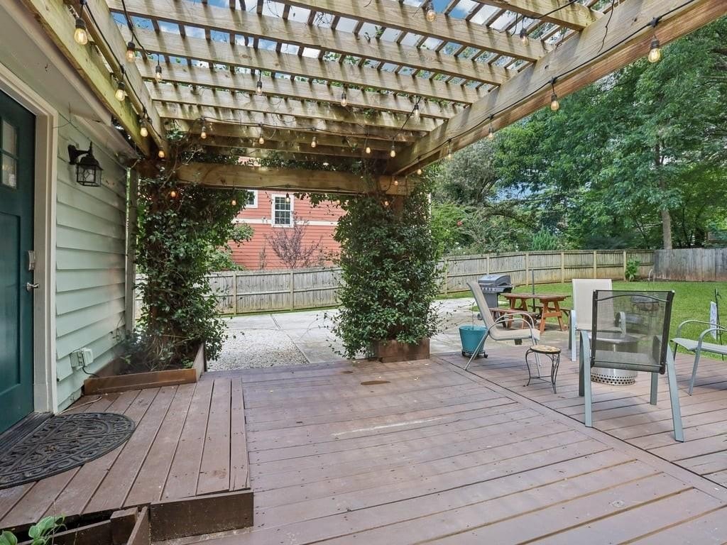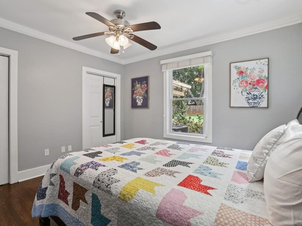 Arrive through a handsome, solar-powered automated gate to a surprisingly private, oversized yard framed by a newly painted white picket fence and an enclosed custom perimeter, a rare intown sanctuary where neighbors are nearby yet thoughtfully out of view. The freshly painted exterior sets an elegant tone enhanced by new gutters and downspouts with debris guards, while professionally designed hosta gardens and a Zenith Zoysia sodded lawn deliver a lush, magazine-ready welcome. Step inside to a sunlit, open floor plan where generous living and dining areas flow with ease to a bright kitchen appointed with stainless steel appliances and granite counters. Every surface feels refreshed and intentional, and the entire home reflects a no-expense-spared mindset.
