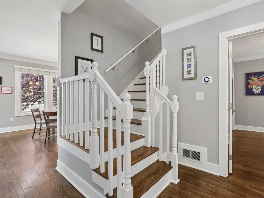 Upstairs, the primary suite is a calming retreat with wonderful volume and an updated bath; upgraded floors extend through the primary bedroom and closets, and thoughtfully reworked closets, including built-in storage in the primary, keep life beautifully organized. Two additional bedrooms and a convenient powder room balance daily routines with quiet sophistication. Smart-home upgrades elevate comfort and peace of mind, Nest thermostat and Protect devices, Schlage smart locks, and Eufy cameras and doorbell, while recent capital improvements instill confidence, including a first-floor A/C replacement, chimney-flashing work, fascia enhancements, and an upgraded primary-bath. Beneath it all, the crawlspace/basement has been encapsulated and insulated with a sump pump and room for shelving and storage, underscoring the home’s meticulous care.